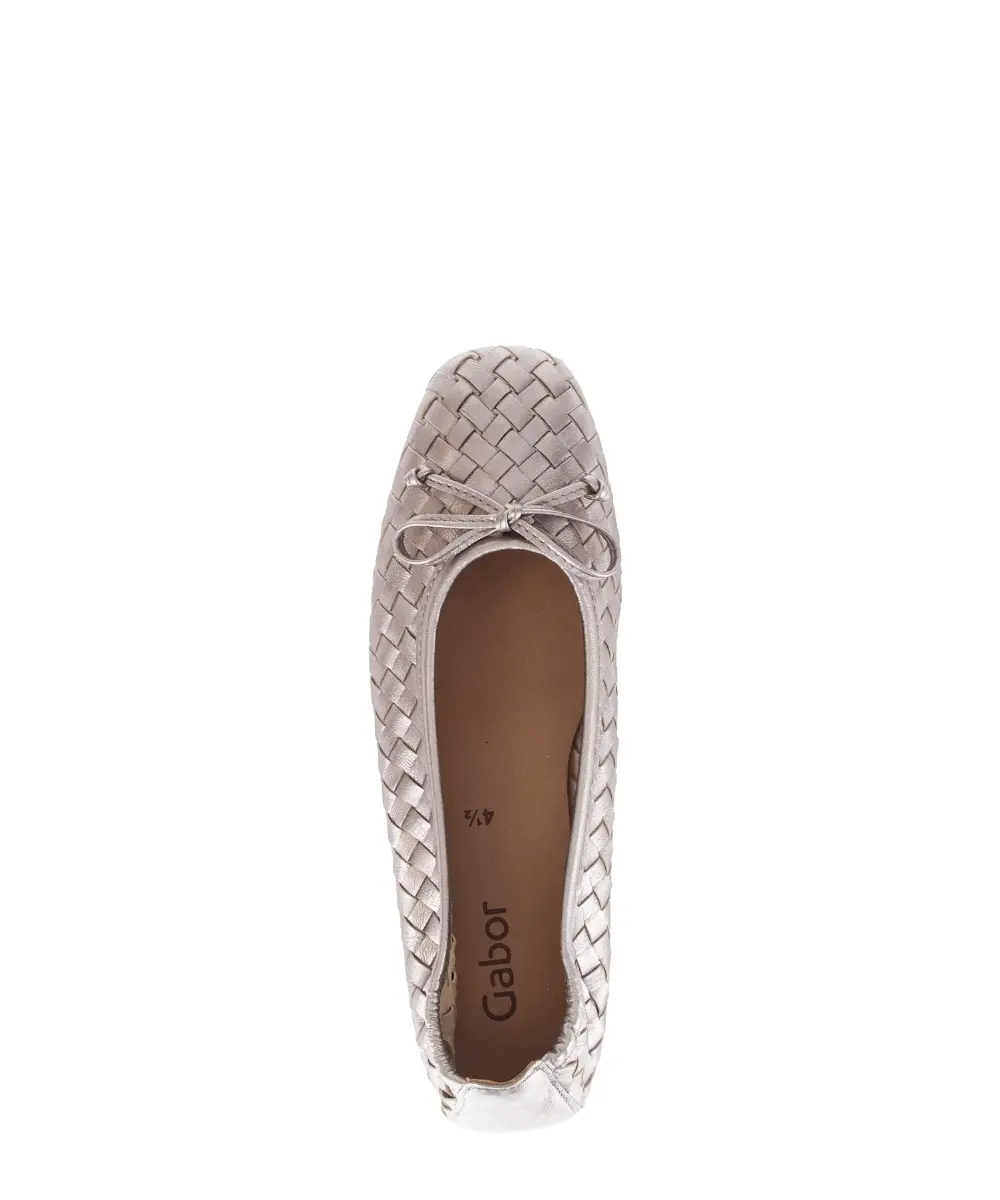 Deze verfijnde Gabor ballerina van beige nappaleer is een stijlvolle klassieker met een moderne twist. Het gevlochten leer geeft deze schoen een luxe, ambachtelijke uitstraling, terwijl het subtiele strikje op de neus zorgt voor een vrouwelijk accent. Dankzij de soepele uitvoering vormt de ballerina zich moeiteloos naar je voet en biedt de Best Fitting wijdte F net dat beetje extra ruimte bij de voorvoet voor langdurig comfort. Het vaste voetbed ondersteunt je voet op natuurlijke wijze, waardoor je ook tijdens lange dagen comfortabel blijft lopen. De zachte glans van het beige nappaleer maakt deze ballerina veelzijdig en tijdloos. De flexibele zool zorgt voor lichtheid en beweeglijkheid bij elke stap, ideaal voor dagelijks gebruik of onderweg.