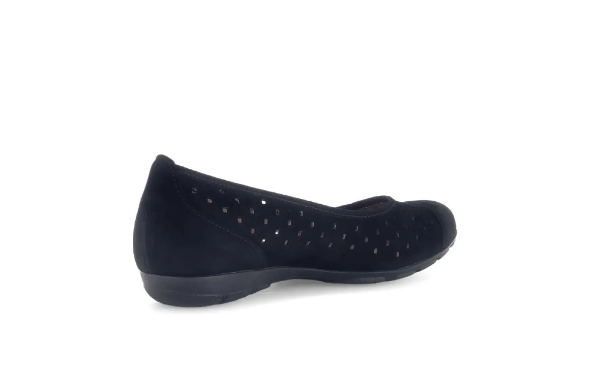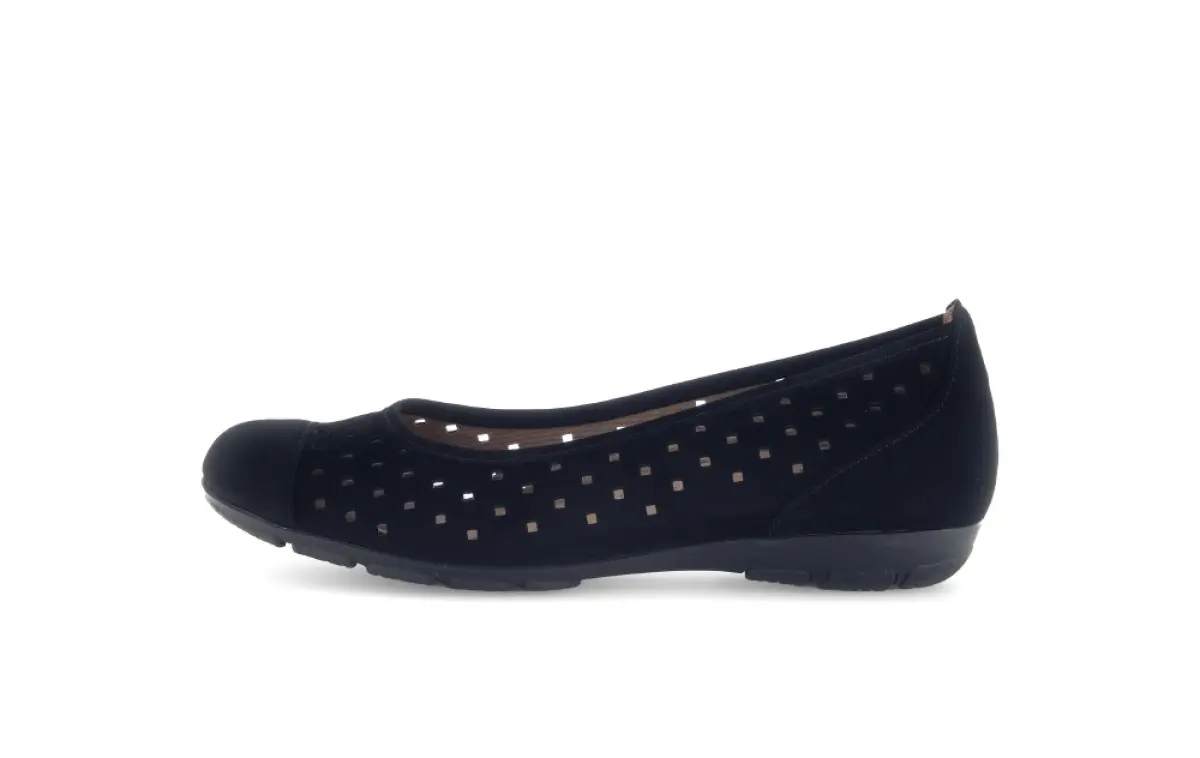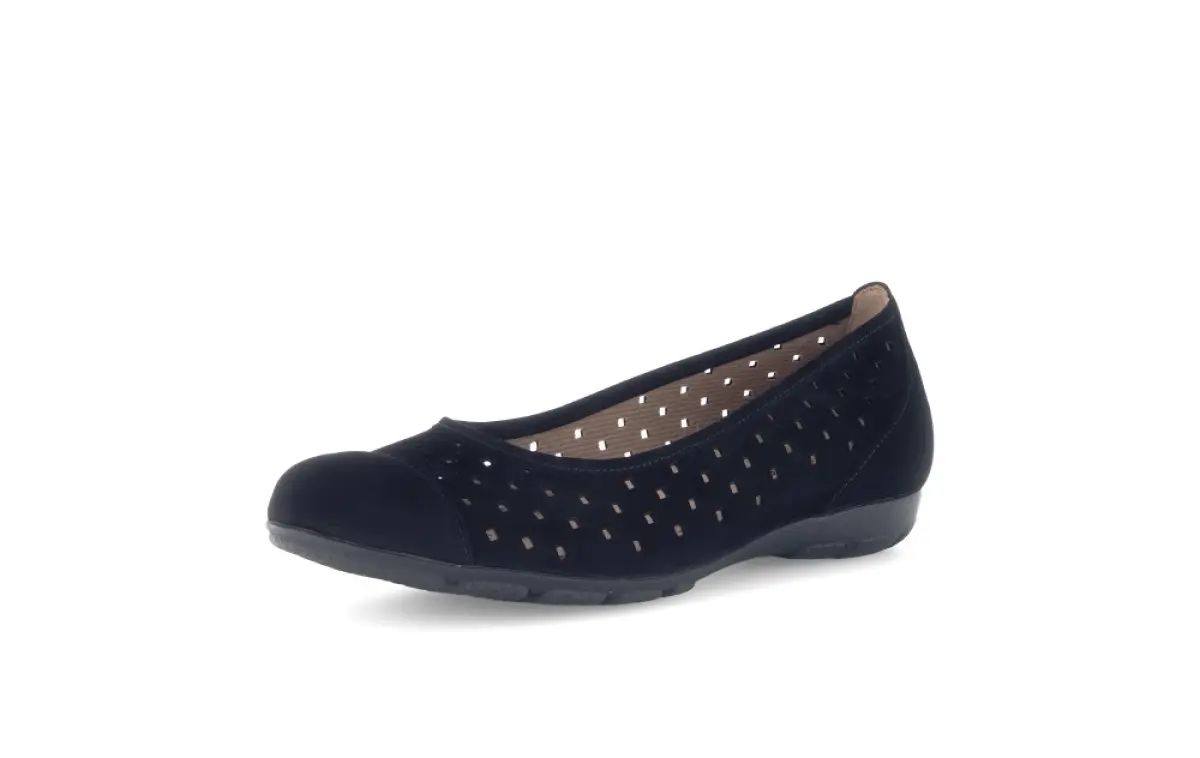 Deze zwarte ballerina's van Gabor zijn een tijdloze toevoeging aan elke garderobe. Gemaakt van nubuck bieden ze een luxe uitstraling en uitzonderlijk comfort. Het perforatiedesign geeft een moderne, luchtige twist, terwijl de flexibele zool zorgt voor optimale ondersteuning en bewegingsvrijheid.