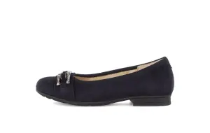 Deze zwarte ballerina van suède van Gabor is een perfecte mix van elegantie en draagcomfort. Het zachte suède geeft de schoen een luxe uitstraling en voelt soepel aan om je voet. Dankzij het losse voetbed geniet je van extra comfort en kun je eenvoudig je eigen zooltjes gebruiken. De wijdte G zorgt voor een fijne pasvorm met net dat beetje extra ruimte. Ideaal om zowel casual als gekleed te dragen, terwijl de flexibele zool zorgt voor een licht en comfortabel loopgevoel, de hele dag door.