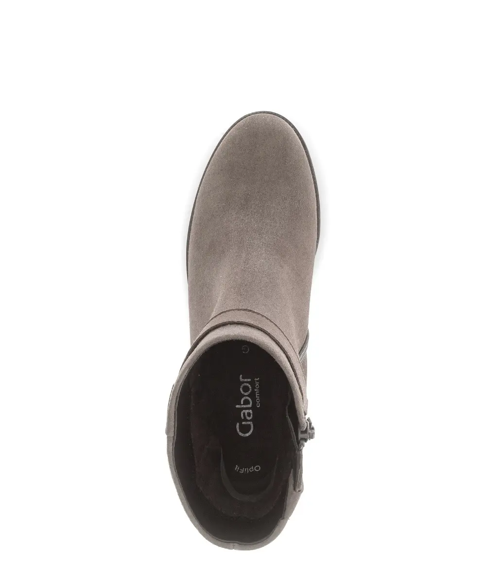 Deze taupekleurige enkellaars van Gabor straalt ingetogen klasse uit. Het zachte suède voelt luxueus aan en geeft de laars een verfijnde uitstraling. De sierlijke gesp bij de enkel zorgt voor een subtiel accent en maakt deze laars ideaal voor zowel een geklede als casual look. Met een comfortabele blokhak en wijdte G biedt dit model de perfecte balans tussen stijl en draaggemak. Draagbaar van ochtend tot avond en moeiteloos te combineren met je favoriete herfstkleuren. Wacht niet langer en geef je garderobe een stijlvolle upgrade.