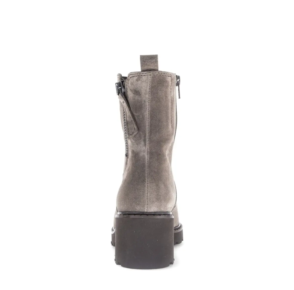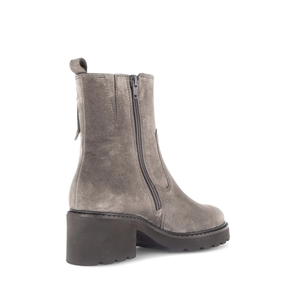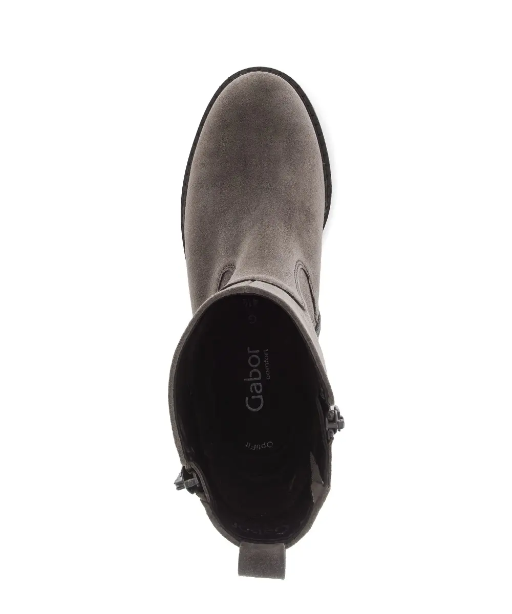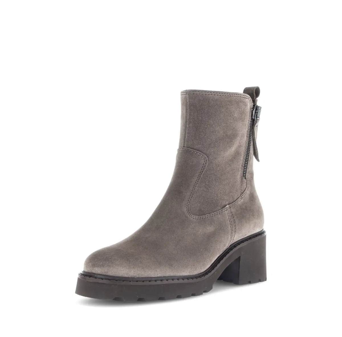 Deze taupekleurige Gabor enkellaars van velour in wijdte G combineert robuuste elegantie met dagelijks draagcomfort. Het zachte velour voelt fluweelachtig aan en geeft een warme, rijke uitstraling, terwijl de stevige blokhak en profielzool zorgen voor grip en stabiliteit op koude dagen. De ritssluiting maakt aan- en uittrekken moeiteloos. Dankzij de G-wijdte ervaar je extra bewegingsruimte zonder in te leveren op stijl. Perfect onder een rechte jeans of midi-jurk. Bestel nu en stap stijlvol de herfst in.