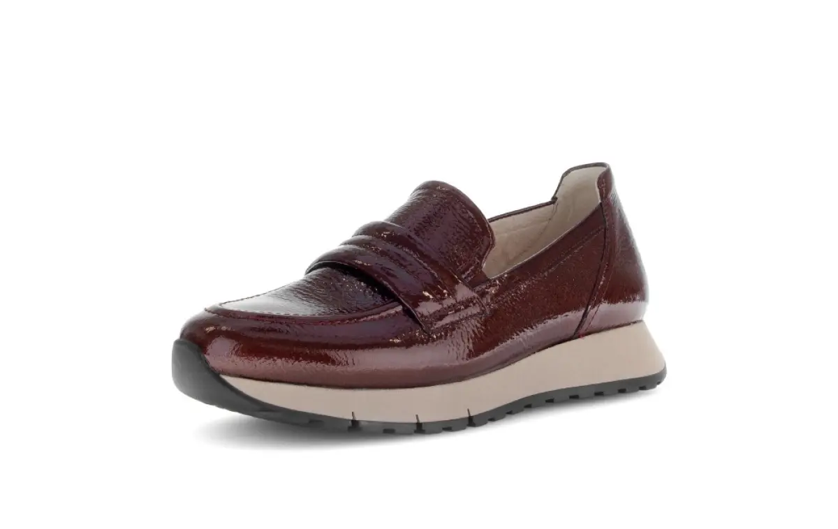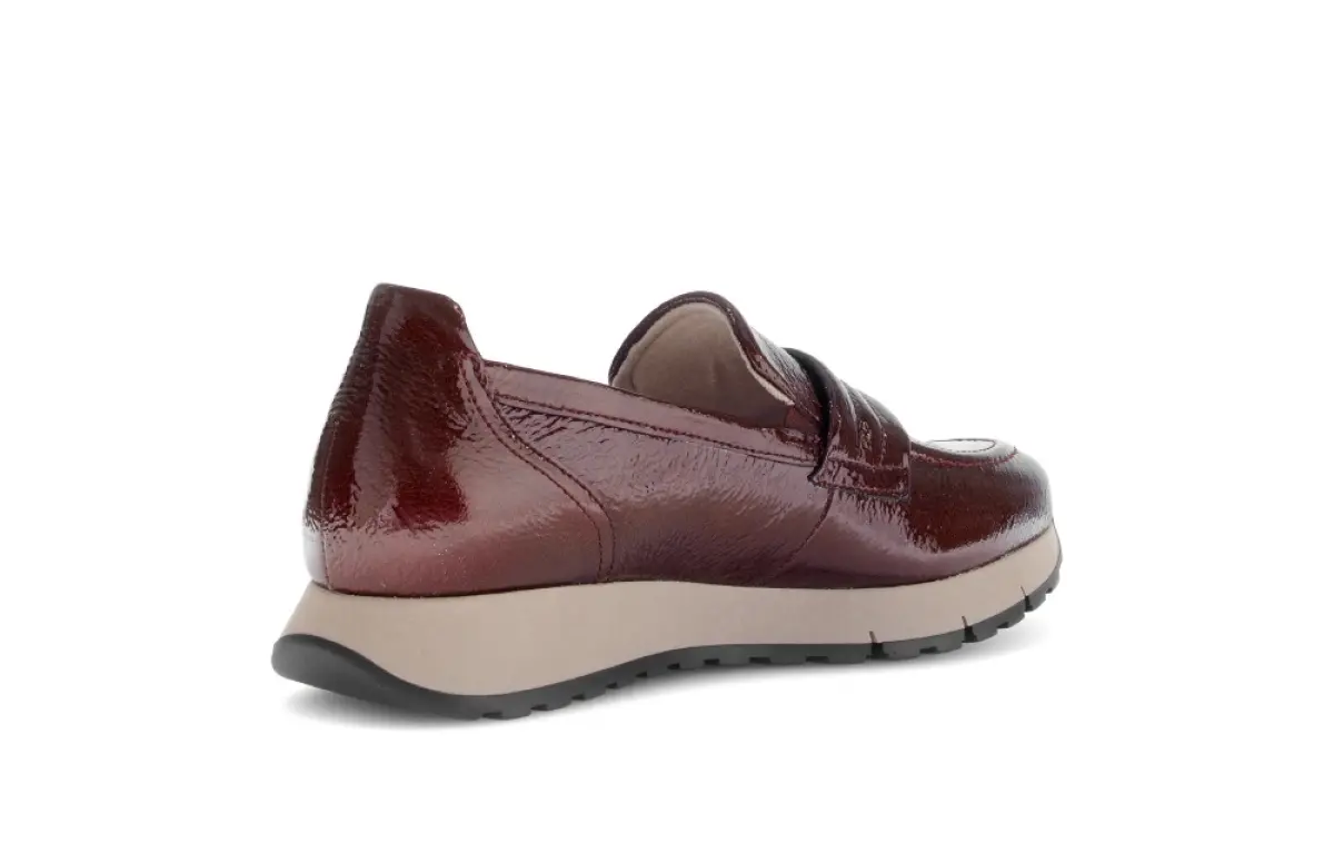 Maak een stijlstatement dit najaar met deze bordeaux lakleren instapper in wijdte G. De diepe, warme kleur straalt elegantie uit en combineert prachtig met herfsttinten als camel, grijs en donkerblauw. Het glanzende lakleer voelt soepel aan en geeft elke outfit een luxe touch. De lichte zool biedt comfort en ondersteuning, ideaal voor lange dagen. Voeg hem toe aan je garderobe en geniet vandaag nog van tijdloze klasse met comfort.