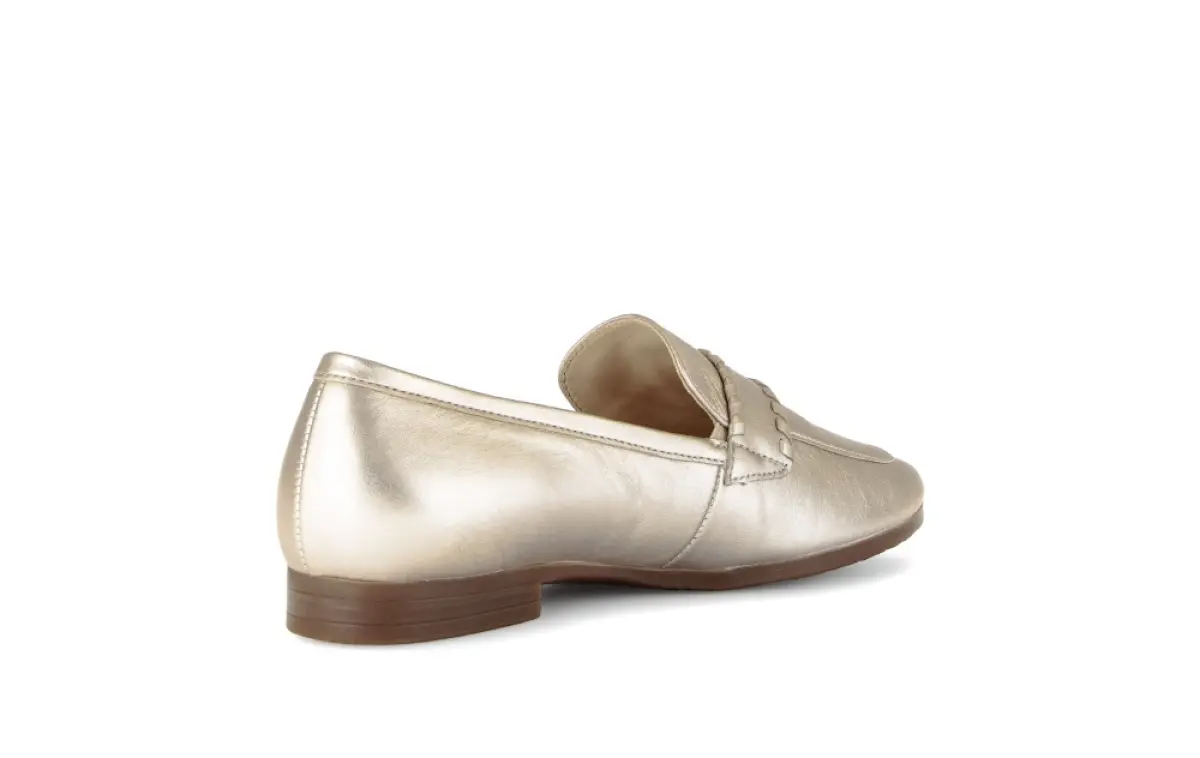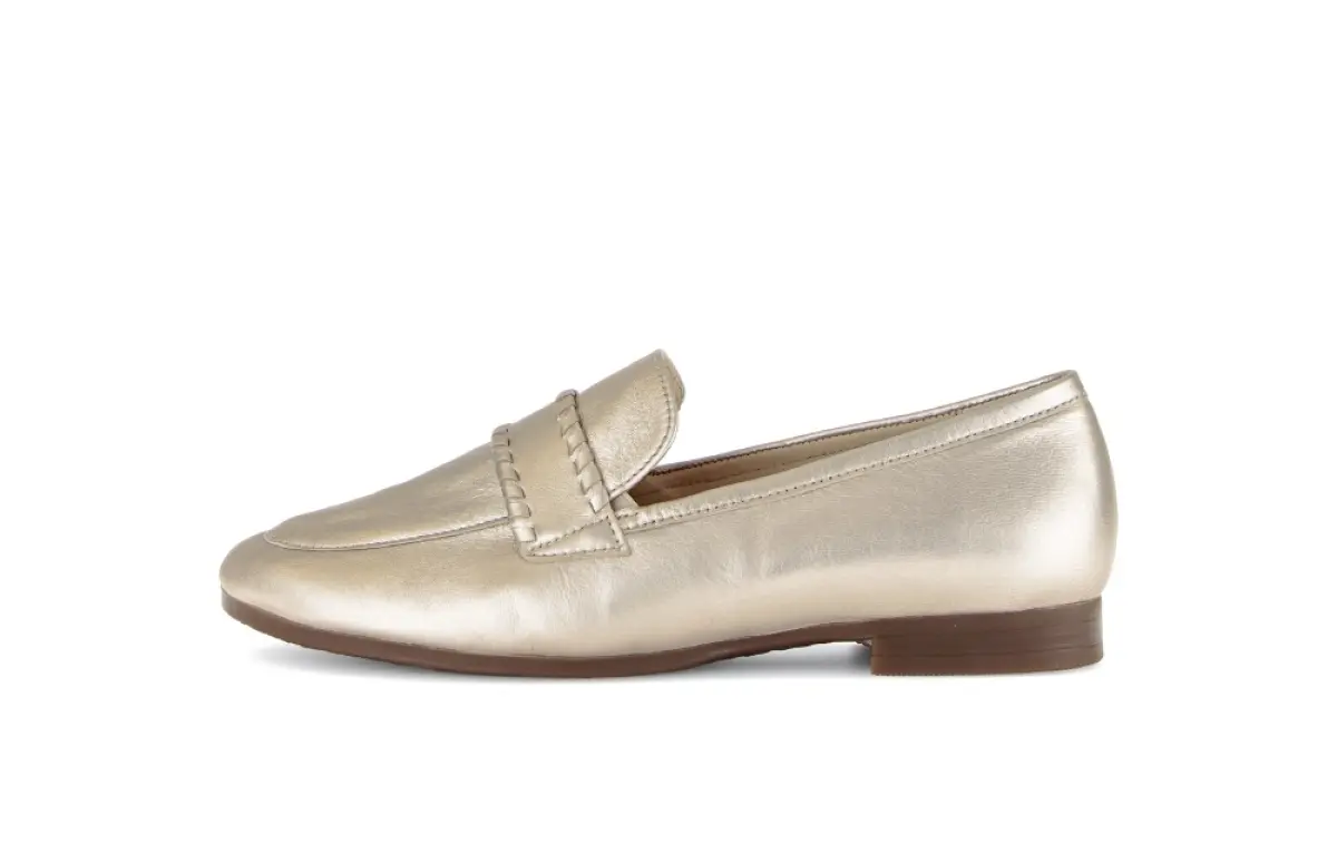 Deze elegante instapper van goudkleurig nappaleer van Gabor straalt luxe en verfijning uit. Het soepele nappaleer vormt zich moeiteloos naar je voet en voelt heerlijk zacht aan. Dankzij het losse voetbed geniet je van optimaal comfort en kun je eventueel je eigen zooltjes gebruiken. De wijdte G zorgt voor een fijne pasvorm met voldoende bewegingsruimte. De lichte zool biedt een prettige demping waardoor deze instapper ook bij langdurig dragen comfortabel blijft. Perfect voor wie houdt van klasse, gemak en kwaliteit in één schoen.