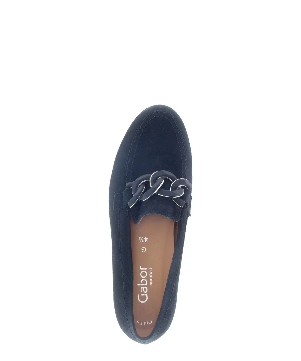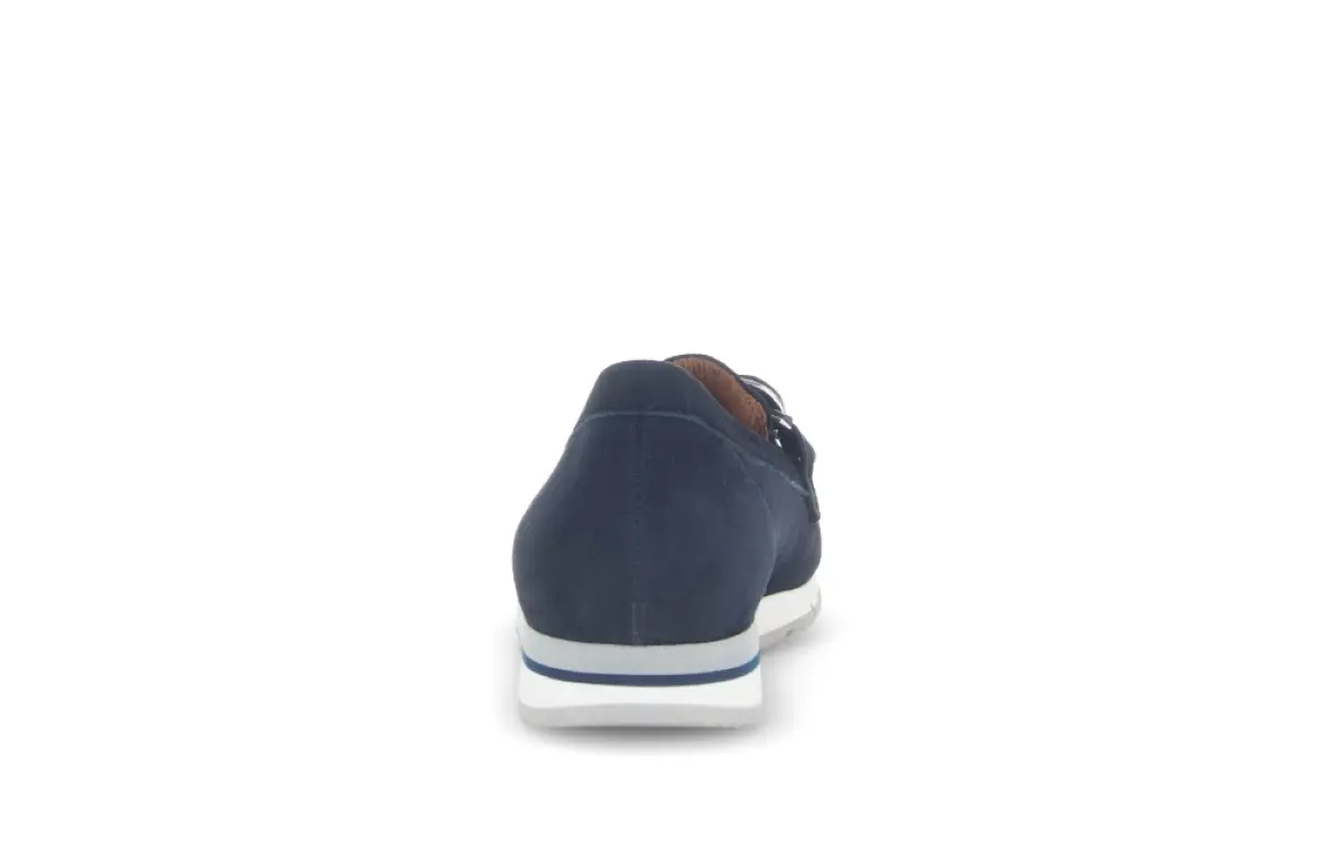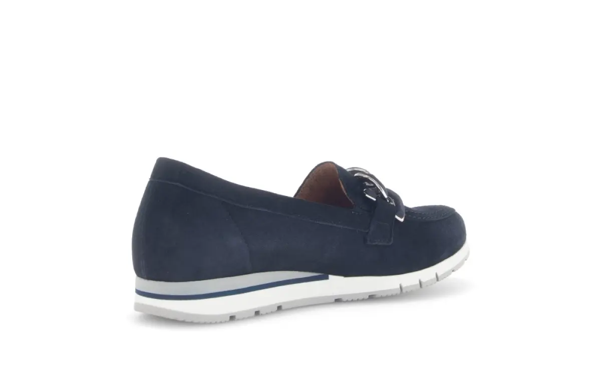 Geef je garderobe een stijlvolle upgrade met deze donkerblauwe Gabor nubuck instapper. Het suede voelt zacht aan en biedt een luxe uitstraling. De elegante schakel op de wreef voegt een eigentijds detail toe, terwijl de comfortabele, lichtgewicht zool zorgt voor langdurig draagplezier. Perfect te combineren met zowel casual als zakelijke outfits. Deze instapper is dé keuze voor dames die een mix zoeken van comfort en verfijning.