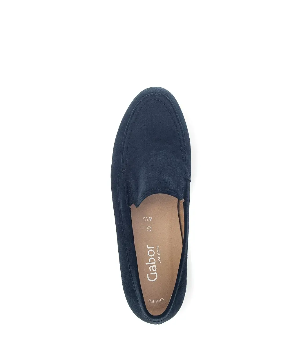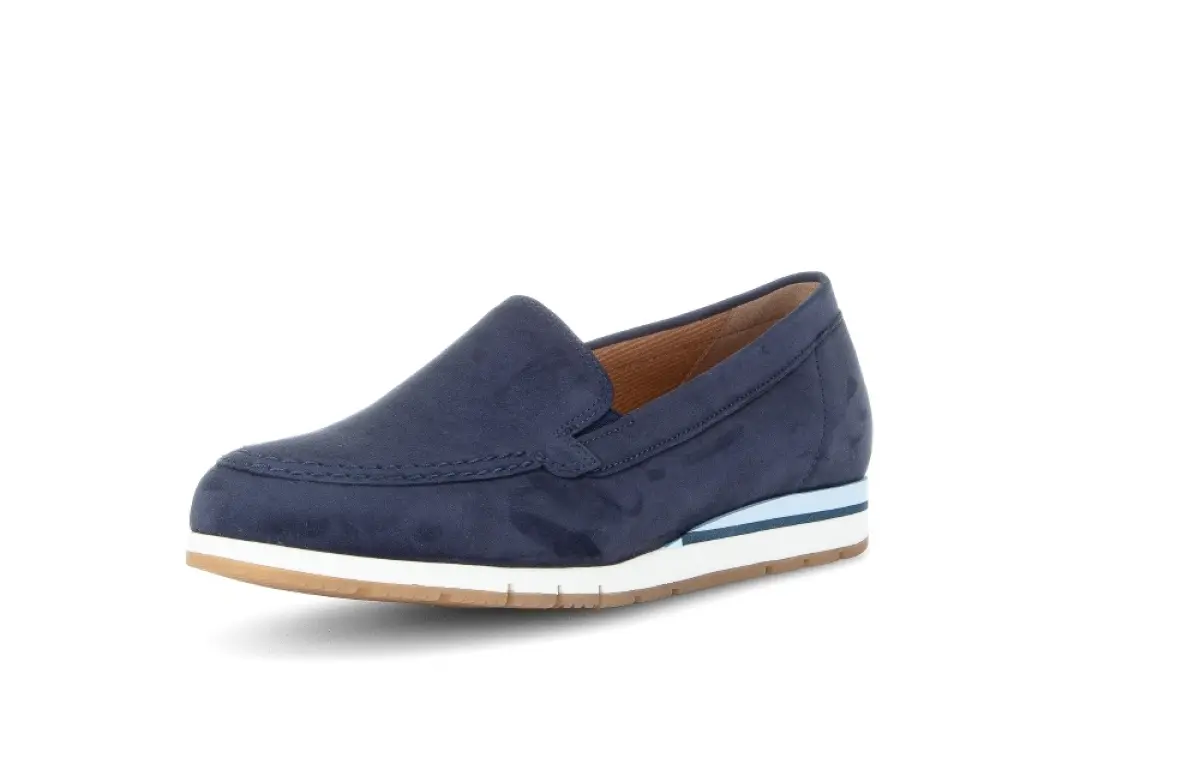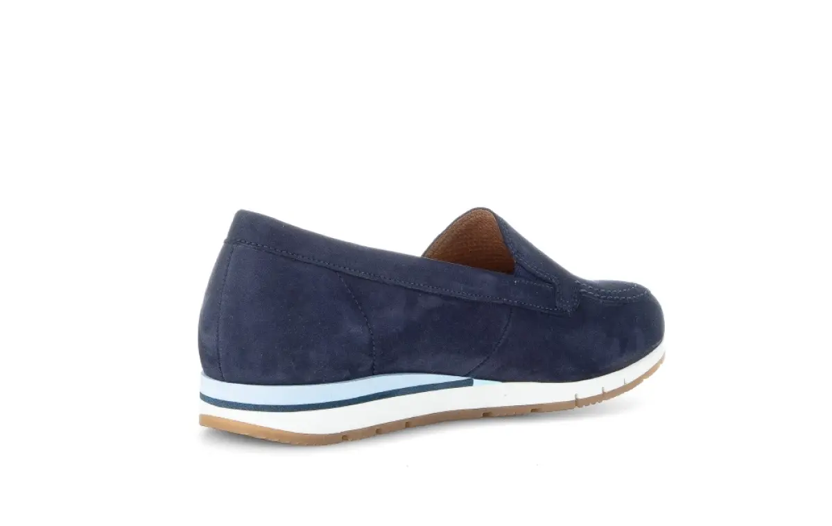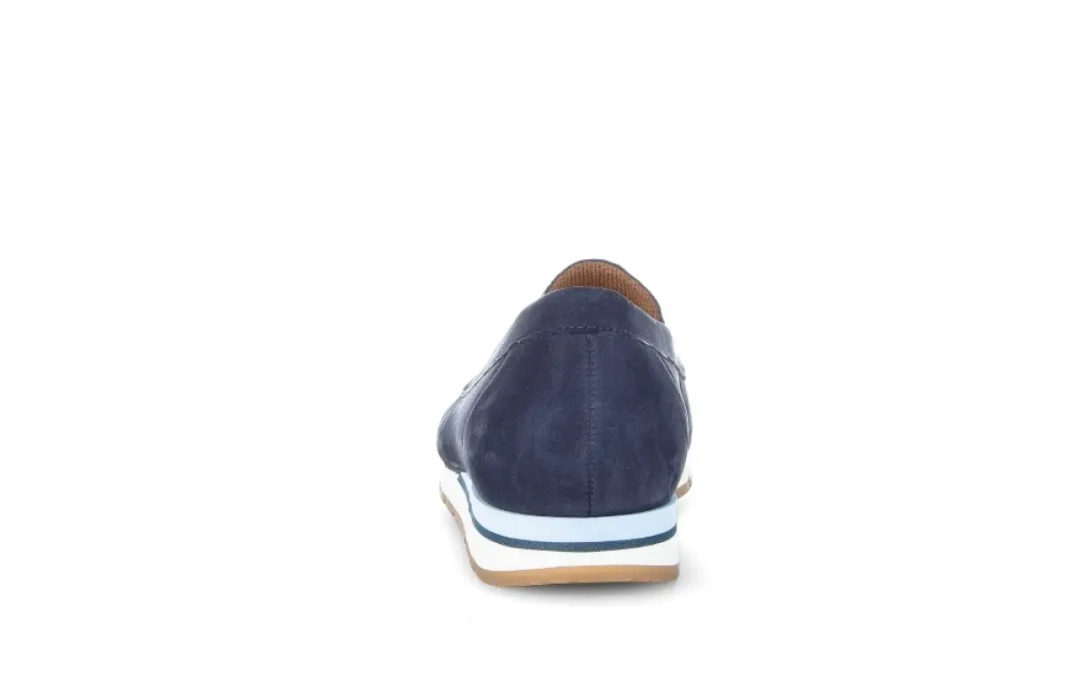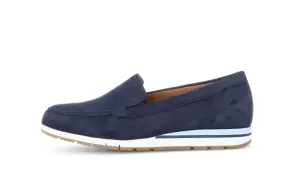 Deze stijlvolle Gabor loafer van nachtblauw nubuck combineert tijdloze klasse met het kenmerkende comfort van Gabor. Het soepele nubuckleer voelt zacht aan en vormt zich prachtig naar de voet, terwijl de diepe blauwe kleur zorgt voor een verfijnde en moderne uitstraling. Dankzij de wijdte G biedt deze schoen extra ruimte, wat bijdraagt aan een comfortabele pasvorm, ook bij een iets bredere voet. Het losse voetbed maakt het mogelijk om eigen inlegzolen te gebruiken, wat ideaal is voor wie extra ondersteuning wenst. Deze nachtblauwe loafer is de ideale keuze voor dames die stijl willen combineren met optimaal draaggemak.