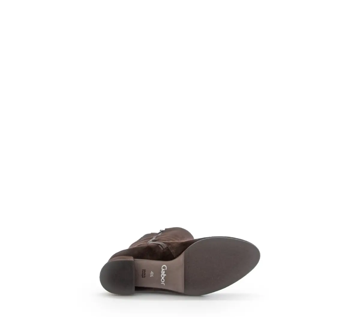 Deze donkeerbruine suède Gabor laars met schachtwijdte M is de perfecte combinatie van stijl en comfort. Het zachte suède sluit mooi aan om het been en de elegante blokhak biedt een subtiele lift zonder in te leveren op stabiliteit. De wijdte F (geen Best Fitting) zorgt voor een fijne pasvorm met extra ruimte bij de bal van de voet. Dankzij de donkerbruine kleur is deze laars perfect te combineren met jouw herfstgarderobe. Draag deze tijdloze klassieker bijvoorbeeld onder een rok, jurk of jeans. Ontdek zelf het verschil van Gabor en bestel nu jouw paar.