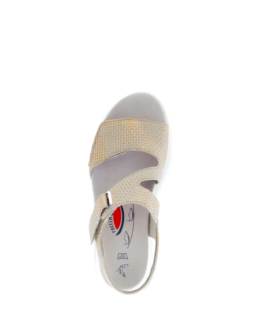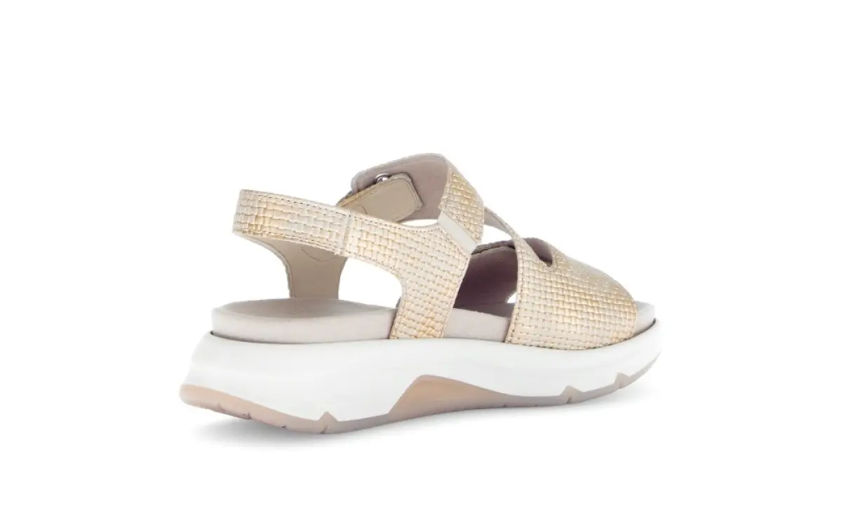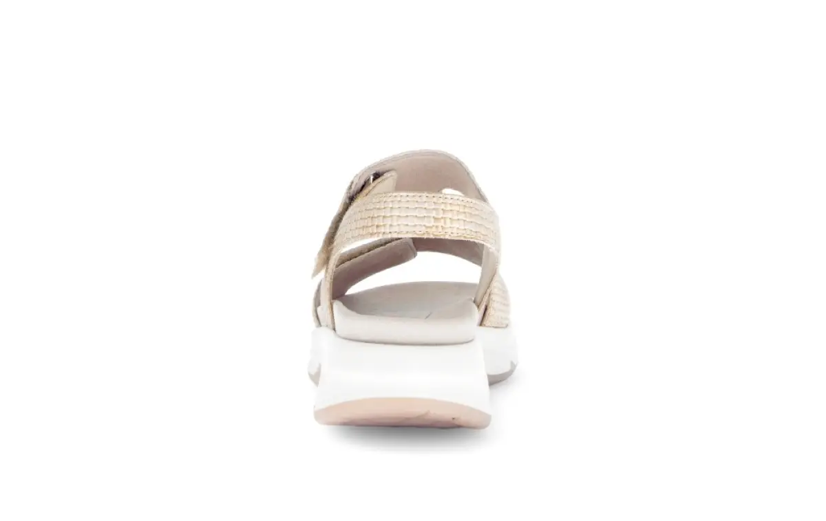 Deze Gabor Rollingsoft sandaal in de kleur brons biedt maximaal loopcomfort dankzij de zool. De verstelbare bandjes zorgen voor een perfecte pasvorm, terwijl het subtiele glanzende design elke outfit een chique touch geeft. De sandaal heeft tevens een uitneembaar voetbed. Ideaal voor lange wandelingen en zomerse dagen.