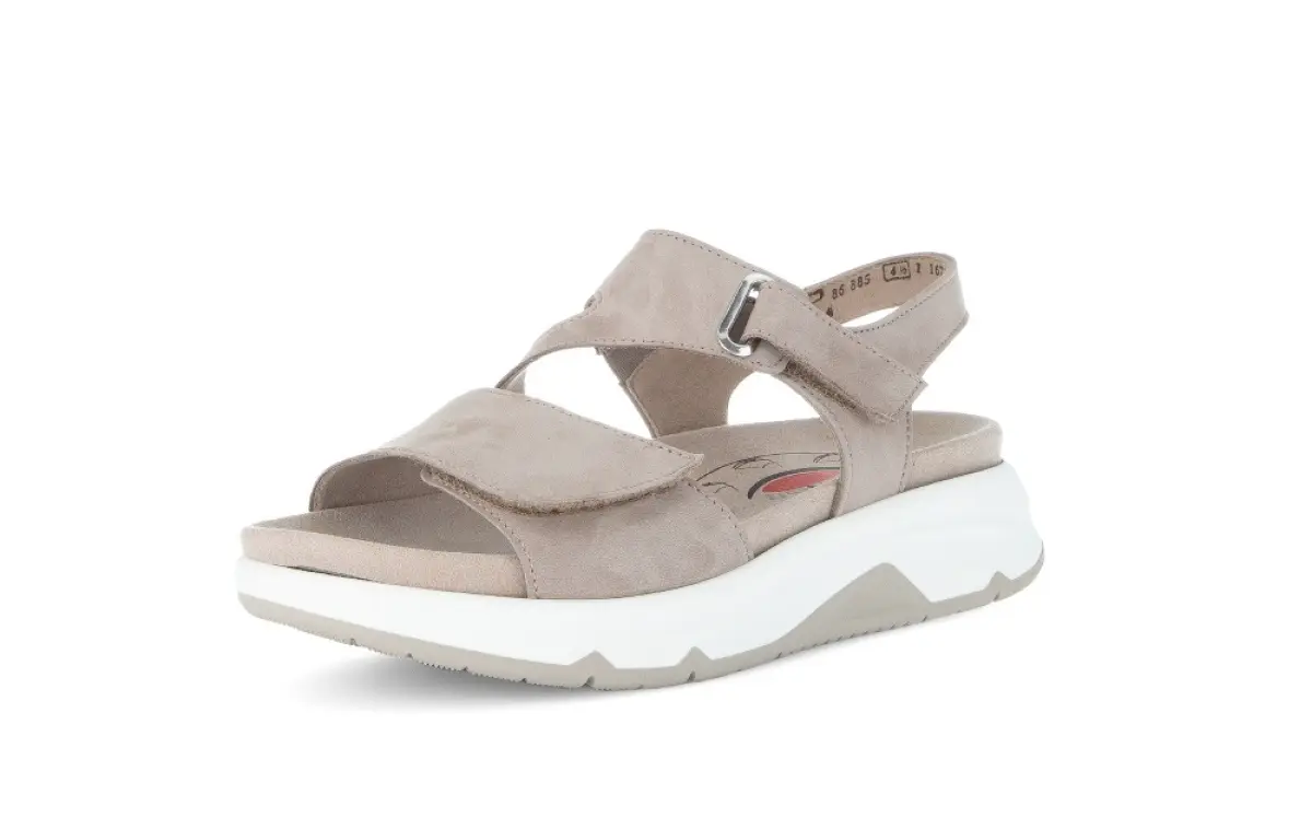 Deze taupekleurige Gabor sandaal met hoogwaardige suède bovenwerk voelt zacht aan, terwijl de brede banden met verstelbare gesp de perfecte pasvorm bieden. De lichte, schokdempende zool met Rollingsoft-technologie ondersteunt je voeten optimaal en zorgt voor extra stabiliteit bij elke stap. Ideaal voor lange wandelingen of een dagje uit. De neutrale beige tint maakt deze sandaal veelzijdig te combineren – draag hem onder een zomerse jurk of een casual jeans voor een moeiteloos trendy look.