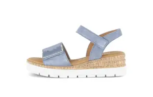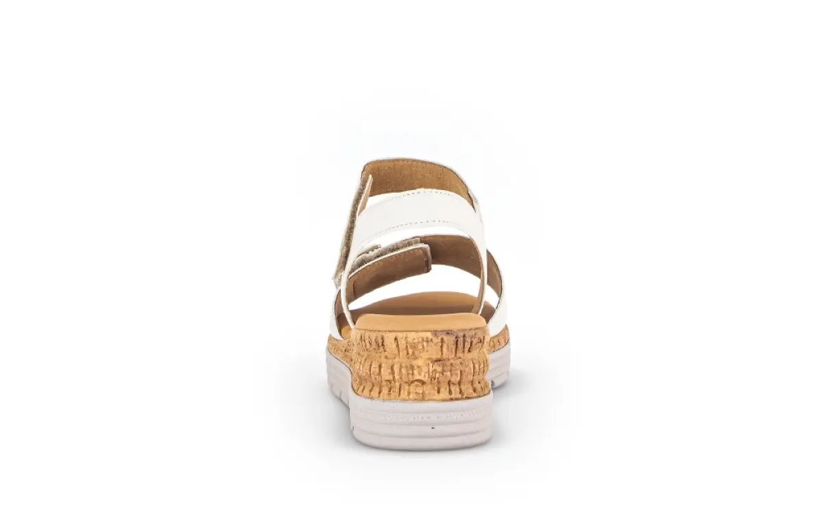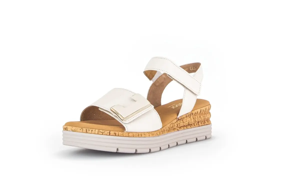 Deze beige sandaal van kalfsleer van Gabor is de ideale mix van zomers comfort en moderne elegantie. Het zachte leer voelt soepel aan en vormt zich mooi naar je voet, terwijl het vaste voetbed zorgt voor stabiele ondersteuning. De lichte plateauzool met kurklook geeft de sandaal een trendy uitstraling en biedt tegelijkertijd uitstekende demping. Dankzij de wijdte G geniet je van een prettige, iets ruimere pasvorm. De verstelbare klittenbandsluiting zorgt voor een perfecte aansluiting rond de voet. Deze sandaal is perfect om lange dagen comfortabel én stijlvol door te brengen.