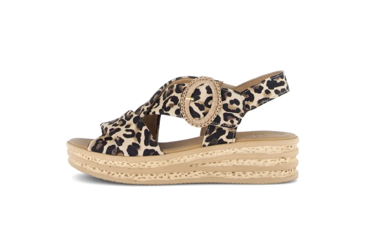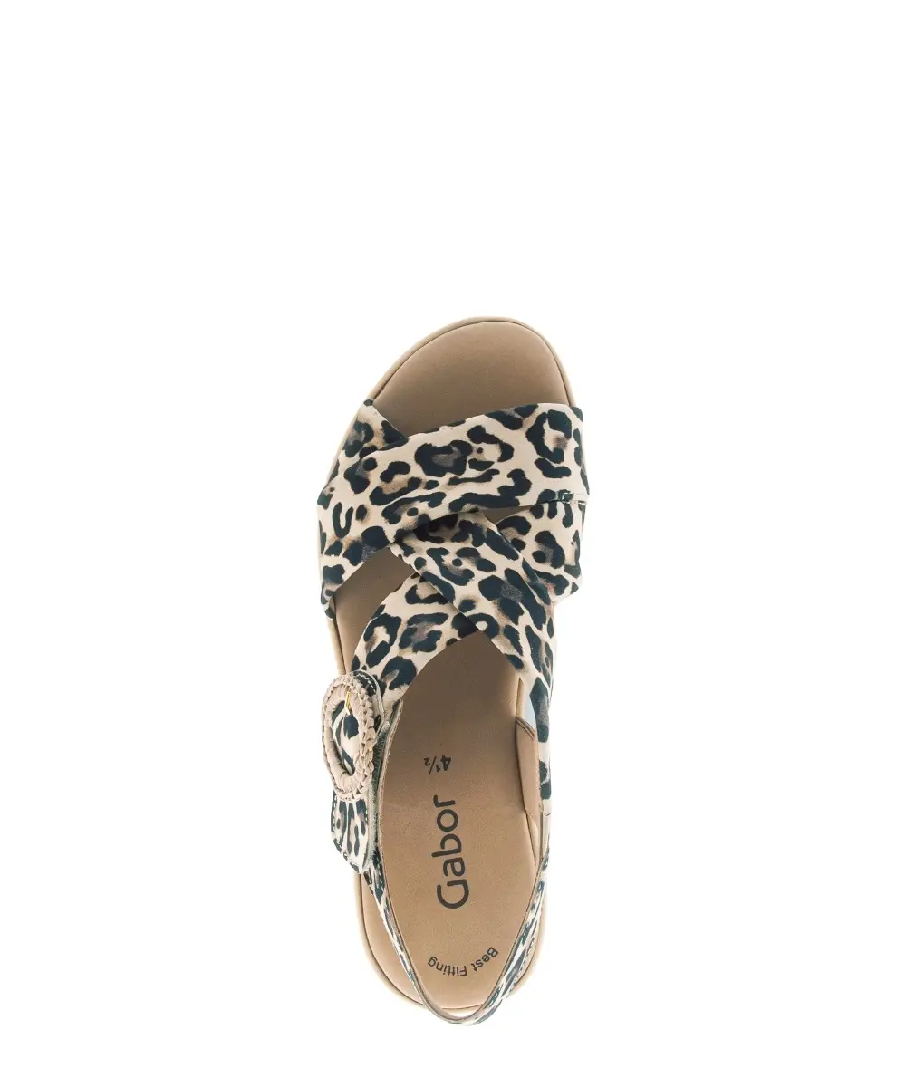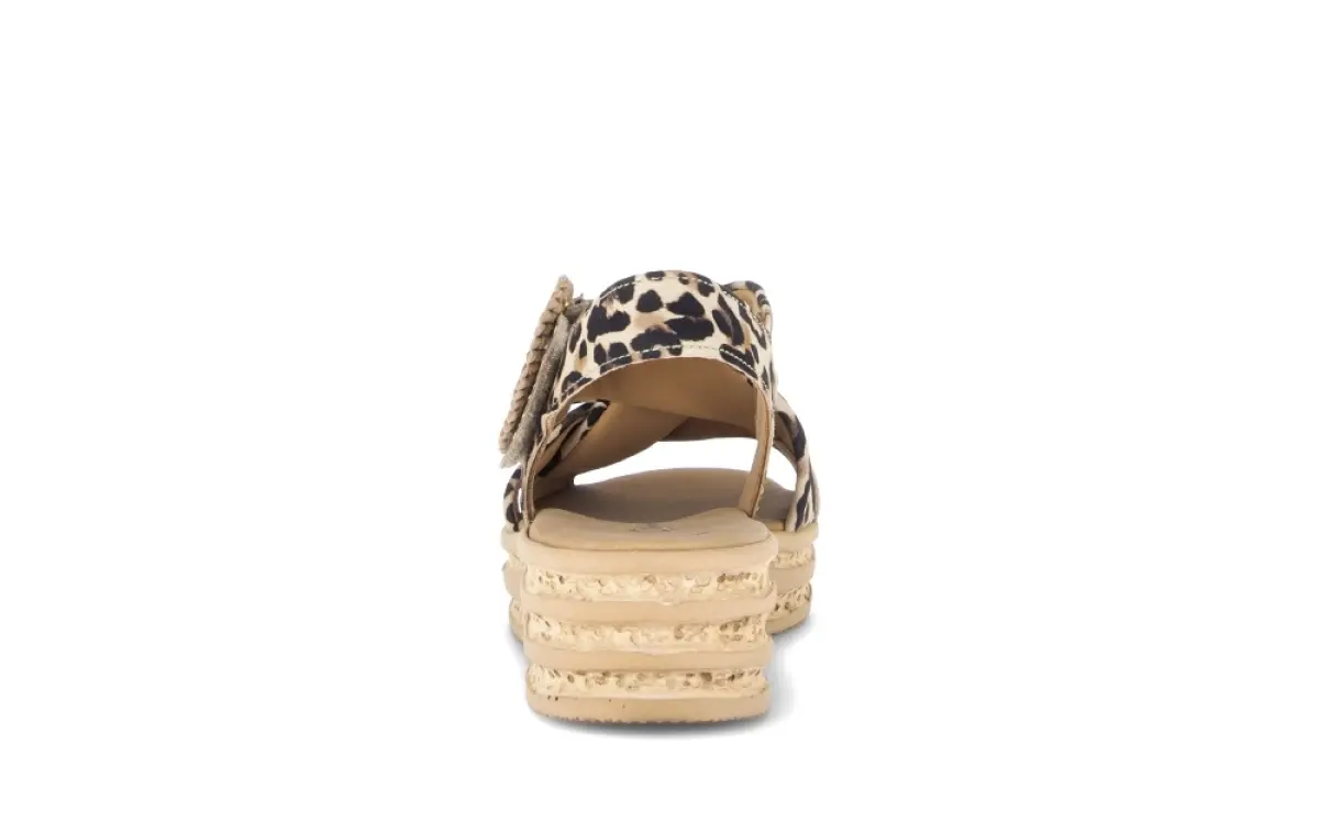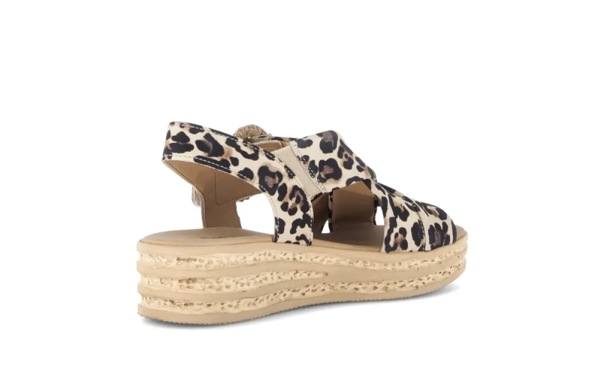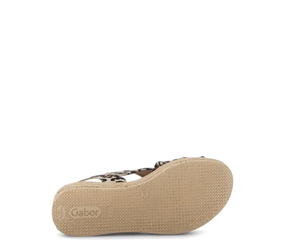 Deze Gabor sandaal van donkerbruin nubuck met luipaardprint is een echte eyecatcher die mode en comfort moeiteloos combineert. De zachte nubuckbanden kruisen elegant over de wreef en voelen soepel aan op de huid. De opvallende ronde gesp met gevlochten detail voegt een speelse, modieuze touch toe. Dankzij de Best Fitting wijdte F ervaar je extra ruimte bij de voorvoet, waardoor je voeten ook tijdens warme dagen comfortabel blijven. Het vaste voetbed biedt ondersteuning en een zacht loopgevoel, zodat je de hele dag licht en ontspannen loopt. De lichte sleehak met kurklookzool zorgt voor stabiliteit en een zomerse uitstraling. De luipaardprint in warme bruintinten maakt deze sandaal ideaal voor wie durft op te vallen en toch een natuurlijke, stijlvolle look wil behouden.