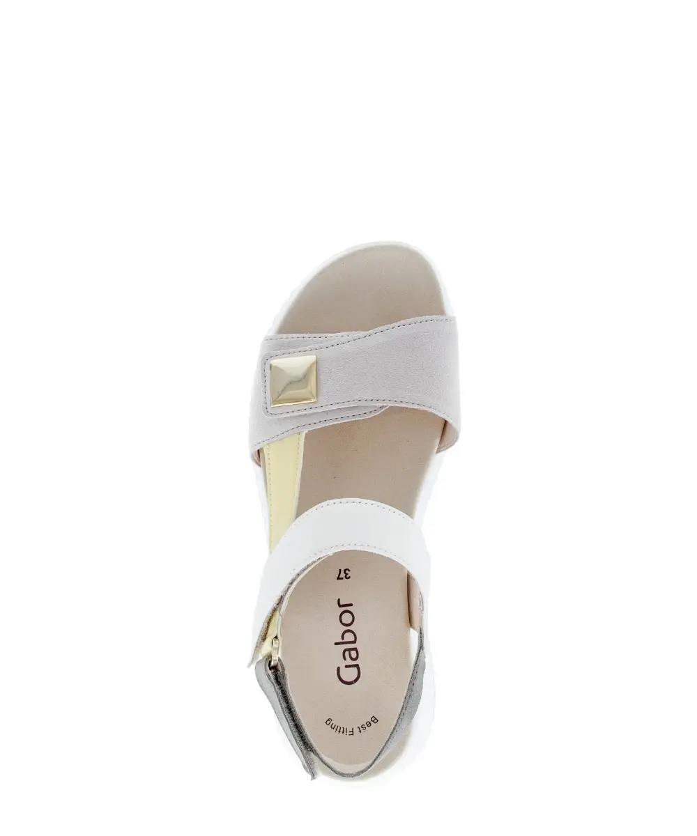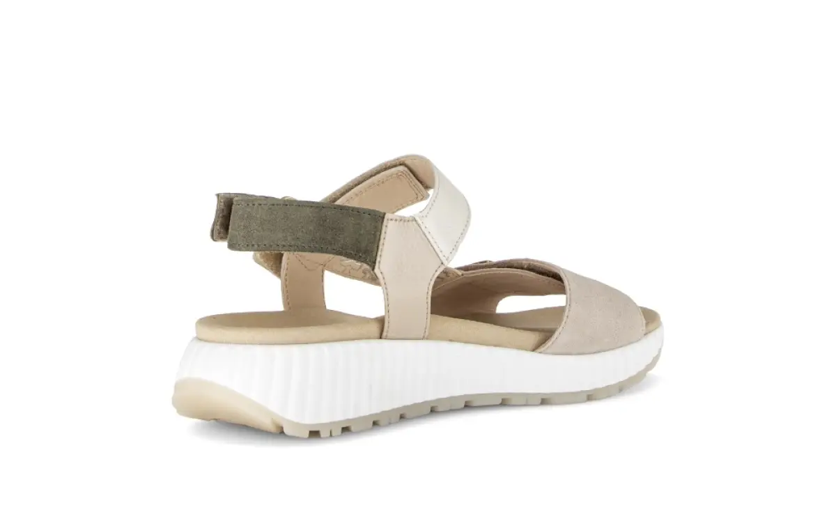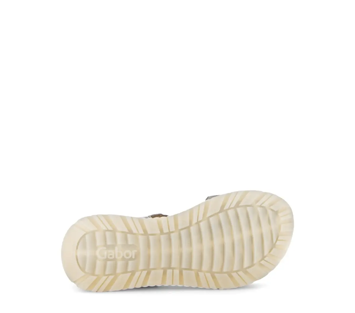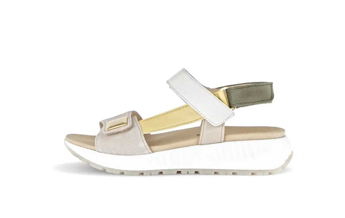 Deze sportieve Gabor sandaal van geel nappaleer biedt een perfecte balans tussen comfort, kleur en eigentijdse stijl. De combinatie van zacht nappaleer en suède zorgt voor een speels contrast, terwijl de banden in tinten van geel, beige en olijfgroen de sandaal een frisse en moderne uitstraling geven. Dankzij de handige klittenbandsluitingen trek je de sandaal gemakkelijk aan en pas je de pasvorm moeiteloos aan. De Best Fitting wijdte F biedt extra ruimte bij de voorvoet, waardoor je voeten ook tijdens warme dagen comfortabel blijven. Het vaste voetbed ondersteunt de voetboog en voelt zacht aan bij elke stap. De lichte profielzool zorgt voor uitstekende demping en stabiliteit en geeft de sandaal een trendy, sportieve look. Deze veelzijdige sandaal is ideaal voor dagelijks gebruik en past perfect bij een casual zomeroutfit.