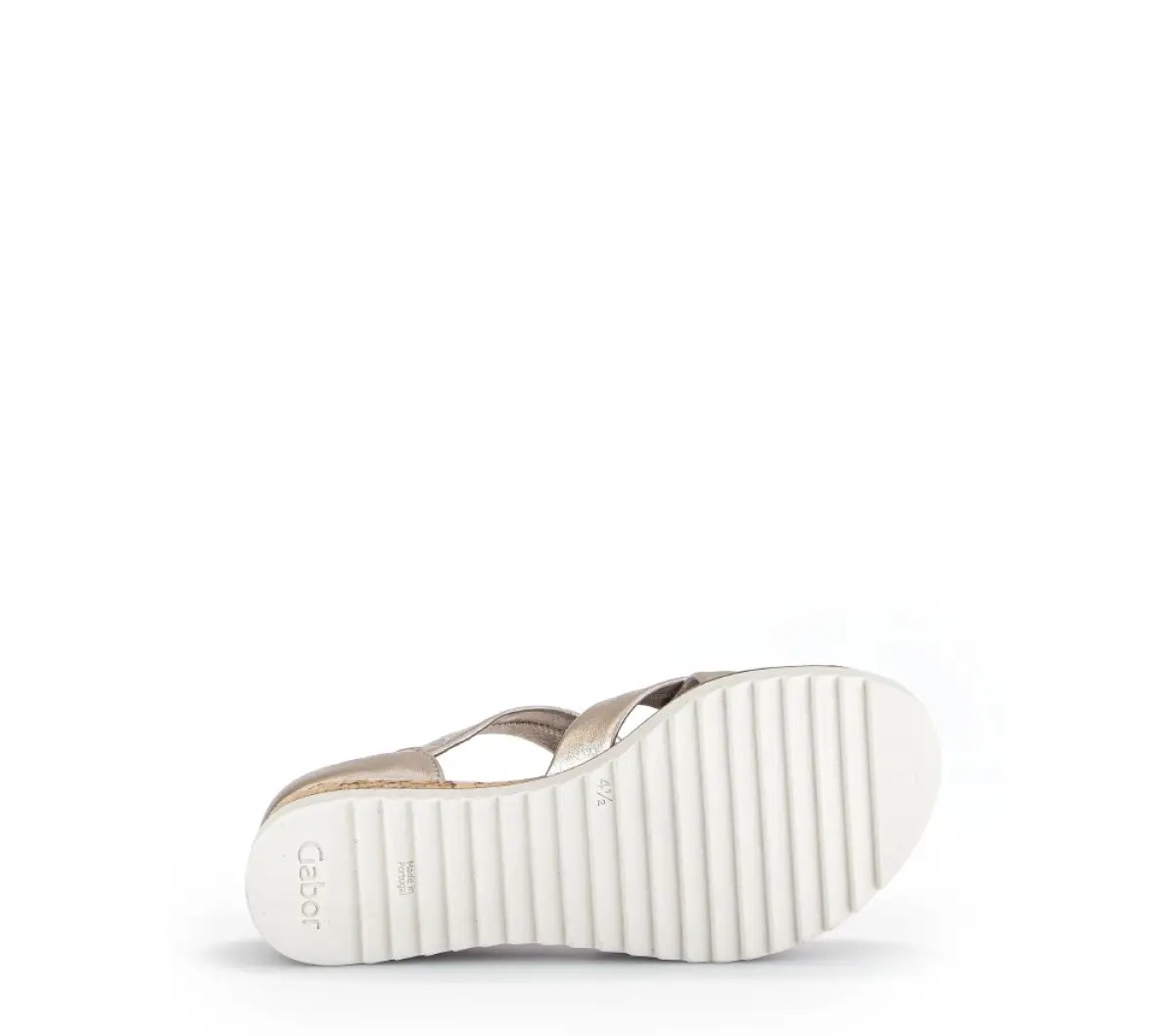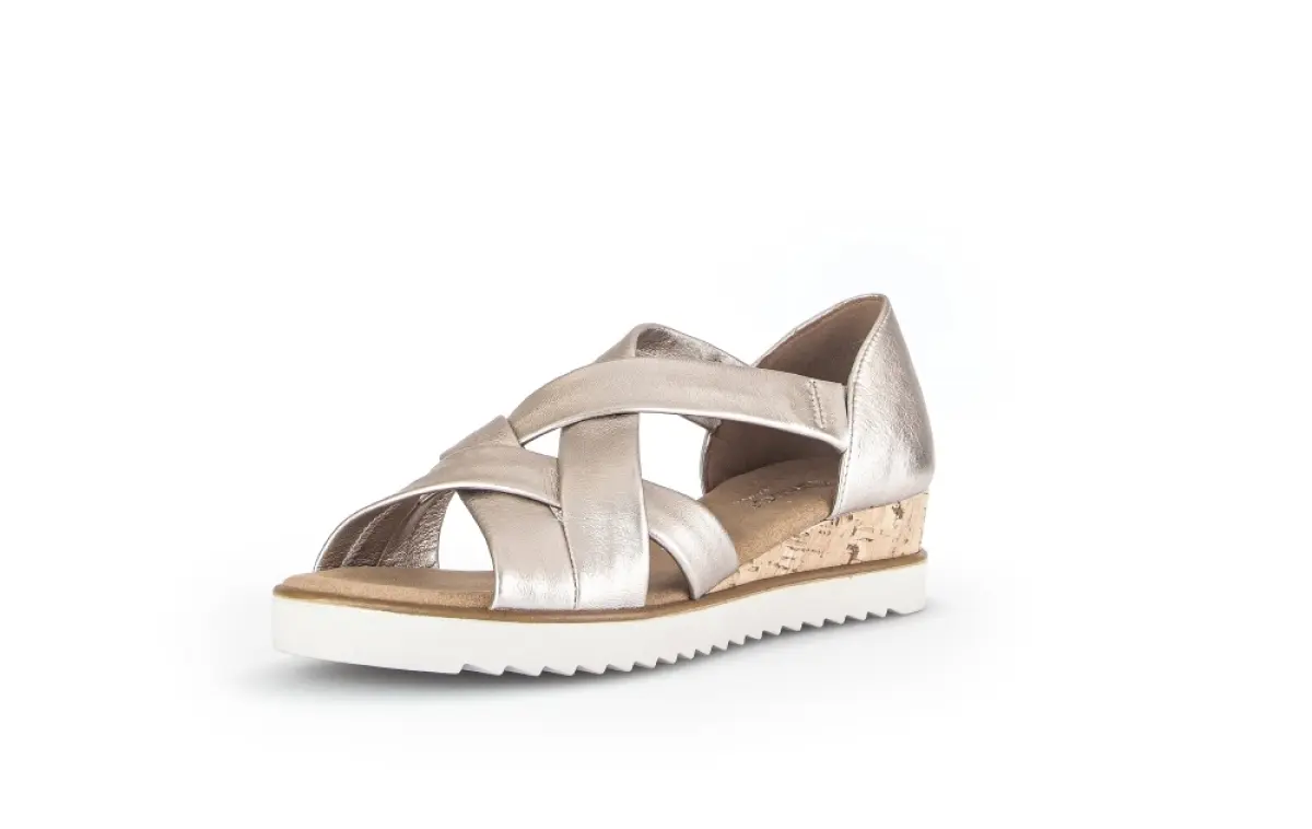 Deze stijlvolle Gabor sandaal van goudkleurig kalfsleer combineert elegantie met dagelijks comfort. Het soepele kalfsleer voelt zacht aan en vormt zich moeiteloos naar je voet. Dankzij het vaste voetbed ervaar je bij elke stap een stabiele en ondersteunende pasvorm, ideaal voor lange zomerdagen. De wijdte G biedt net wat extra ruimte, zodat de sandaal ook comfortabel zit bij een iets bredere voet. De goudkleurige afwerking geeft de sandaal een luxueuze, zomerse uitstraling die prachtig combineert met lichte tinten of juist als eyecatcher bij een eenvoudige outfit. Zoals je van Gabor gewend bent, is ook dit model met veel aandacht voor detail en hoogwaardige materialen vervaardigd, zodat stijl en comfort hand in hand gaan.
