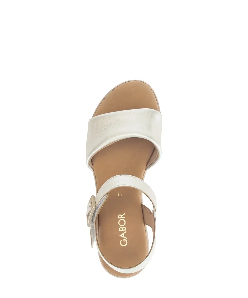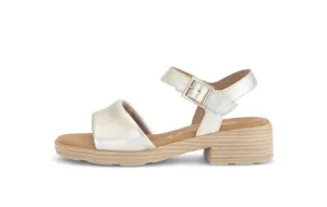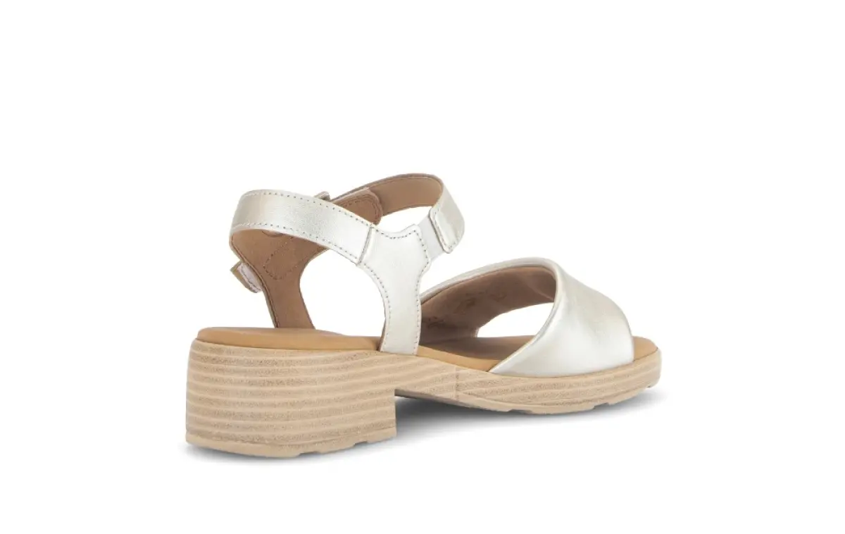 Deze Gabor sandaal van goud nappaleer straalt zomerse elegantie uit en biedt het comfort dat je zoekt voor dagelijks gebruik. Het soepele nappaleer voelt zacht aan en vormt zich natuurlijk naar je voet, terwijl het vaste voetbed zorgt voor stabiele ondersteuning en een ontspannen loopervaring. Dankzij de wijdte H biedt deze sandaal extra ruimte, ideaal als je houdt van een iets bredere pasvorm. Zoals je van Gabor gewend bent, is ook dit model met zorg en aandacht voor detail vervaardigd, voor langdurig draagplezier en stijl.