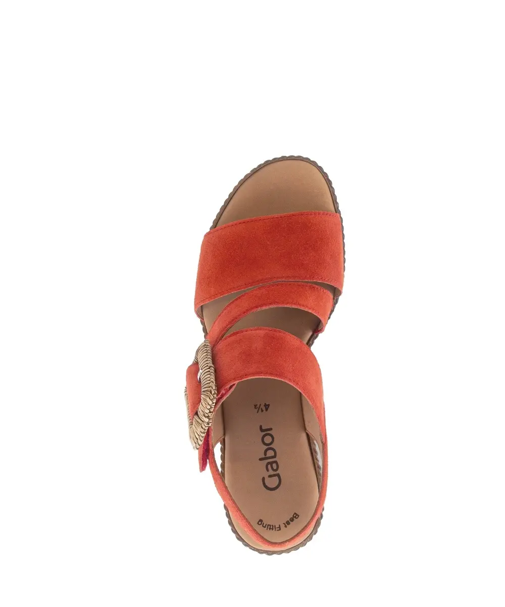 Deze Gabor sleehak van rood velours straalt kracht, vrouwelijkheid en zomerse elegantie uit. De zachte banden van velours omsluiten de voet soepel en zorgen voor een comfortabele pasvorm. De brede, gevlochten gesp vormt een opvallend detail dat het design een speelse en stijlvolle uitstraling geeft. Dankzij de Best Fitting wijdte F biedt deze sleehak extra ruimte bij de voorvoet, wat het draagcomfort verhoogt. Het vaste voetbed is zacht gevoerd en ondersteunt de voet op natuurlijke wijze, zodat je moeiteloos geniet van elke stap. De warme rode tint maakt dit model perfect voor een kleurrijke zomeroutfit en laat zich prachtig combineren met natuurlijke tinten, wit of denim.