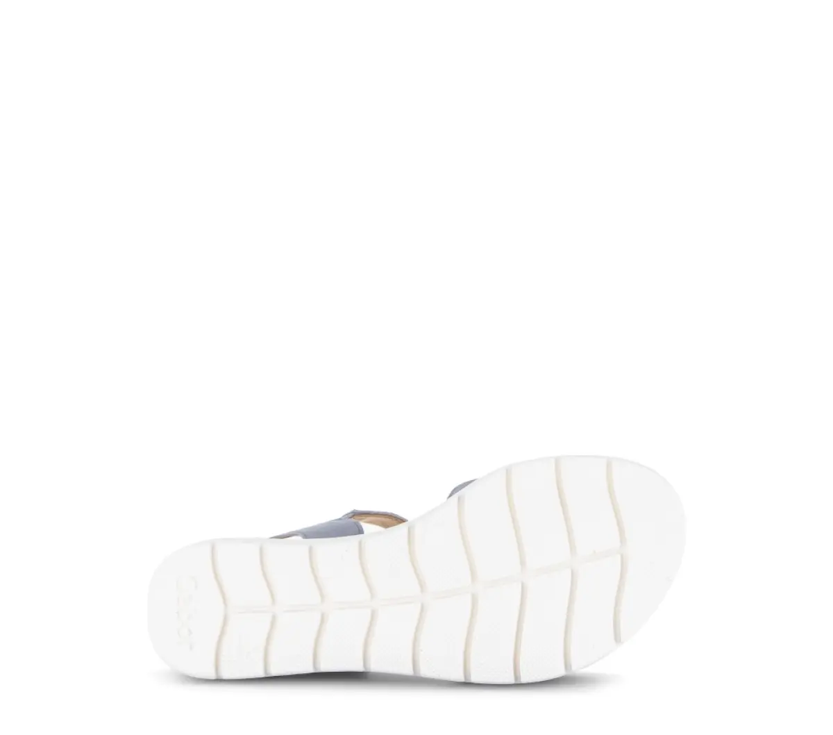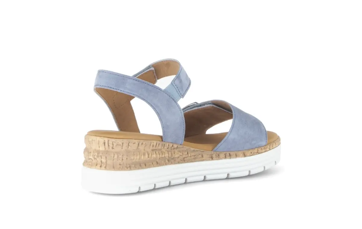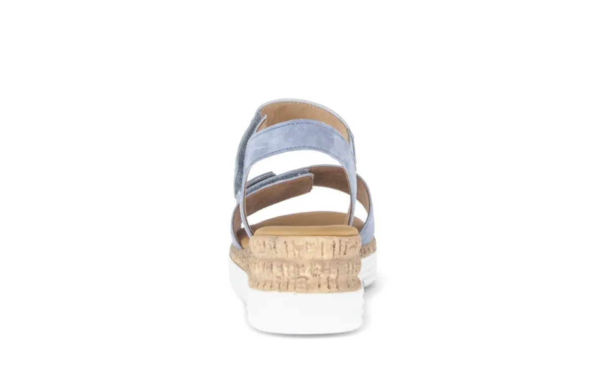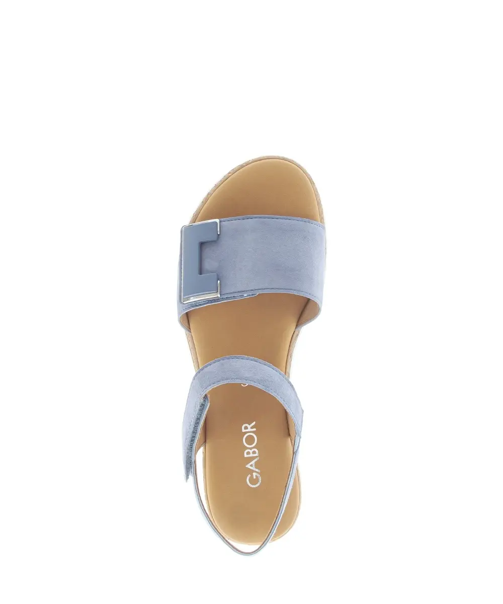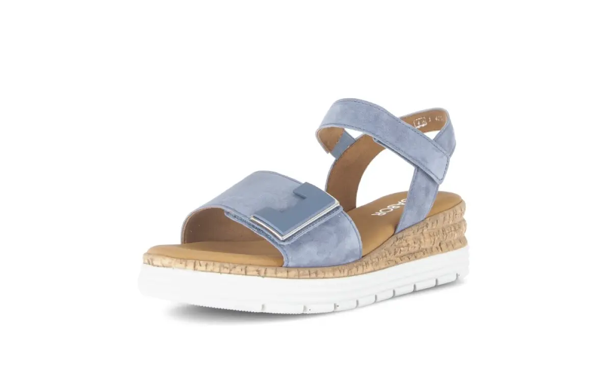 Deze lichtblauwe sandaal van suède van Gabor combineert zomerse elegantie met optimaal draagcomfort. Het zachte suède voelt soepel aan en geeft de schoen een verfijnde uitstraling. Dankzij het vaste voetbed ervaar je stabiele ondersteuning, terwijl de lichte plateauzool zorgt voor een prettig loopgevoel. De wijdte G biedt extra ruimte voor de voet, wat ideaal is voor dagelijks gebruik. De klittenbandsluiting maakt het makkelijk om de sandaal perfect af te stellen op jouw voet. De kurklookzool met witte afwerking geeft een moderne, sportieve touch. Perfect voor zomerse dagen waarop stijl en comfort hand in hand gaan.