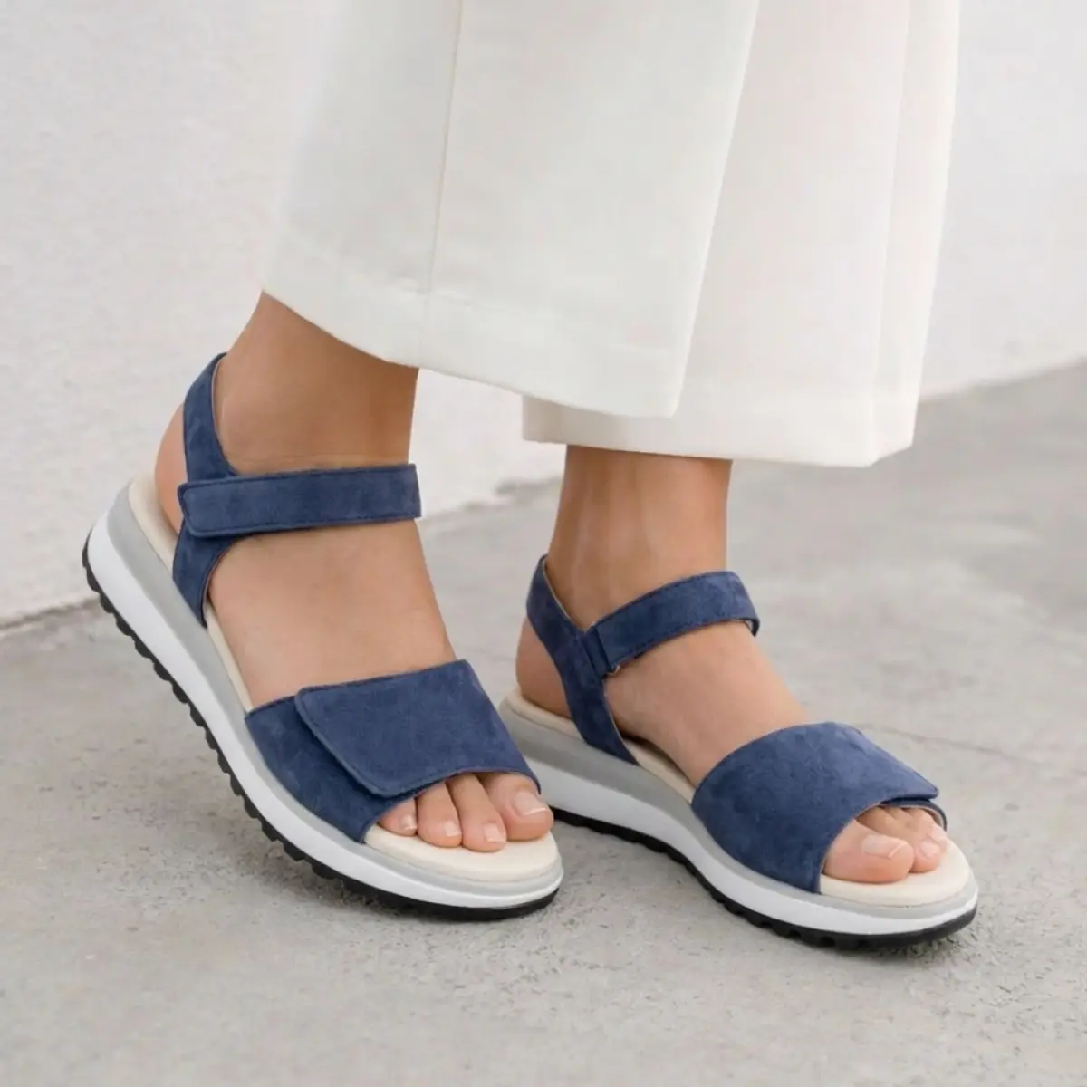 Deze Gabor sandaal van blauw velour combineert elegantie met dagelijks draagcomfort. Het zachte velour voelt soepel aan en zorgt voor een luxueuze uitstraling, terwijl de frisse blauwe kleur moeiteloos past bij zomerse outfits. Dankzij de wijdte G biedt deze sandaal extra ruimte voor je voeten, ideaal voor wie comfort hoog in het vaandel heeft. Het vaste voetbed is ergonomisch gevormd en biedt langdurige ondersteuning, perfect voor dagen waarop je veel loopt of staat. De verstelbare klittenbandsluiting bij de enkel en wreef maakt het eenvoudig om de sandaal precies af te stemmen op jouw voet, zodat hij stevig blijft zitten zonder te knellen. Deze veelzijdige Gabor sandaal is een stijlvolle keuze voor zomerse dagen waarin je comfort en elegantie wilt combineren.