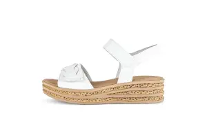 Deze beige suède sandalen van Gabor zijn de perfecte combinatie van comfort en zomerse elegantie. De zachte suède bandjes zijn verfraaid met een subtiele bloemapplicatie, wat een vrouwelijke en verfijnde uitstraling geeft. De gevlochten sleehakzool zorgt voor een natuurlijke, zomerse look en biedt tegelijkertijd uitstekende ondersteuning en demping. Dankzij de handige klittenbandsluiting geniet je van een perfecte pasvorm.