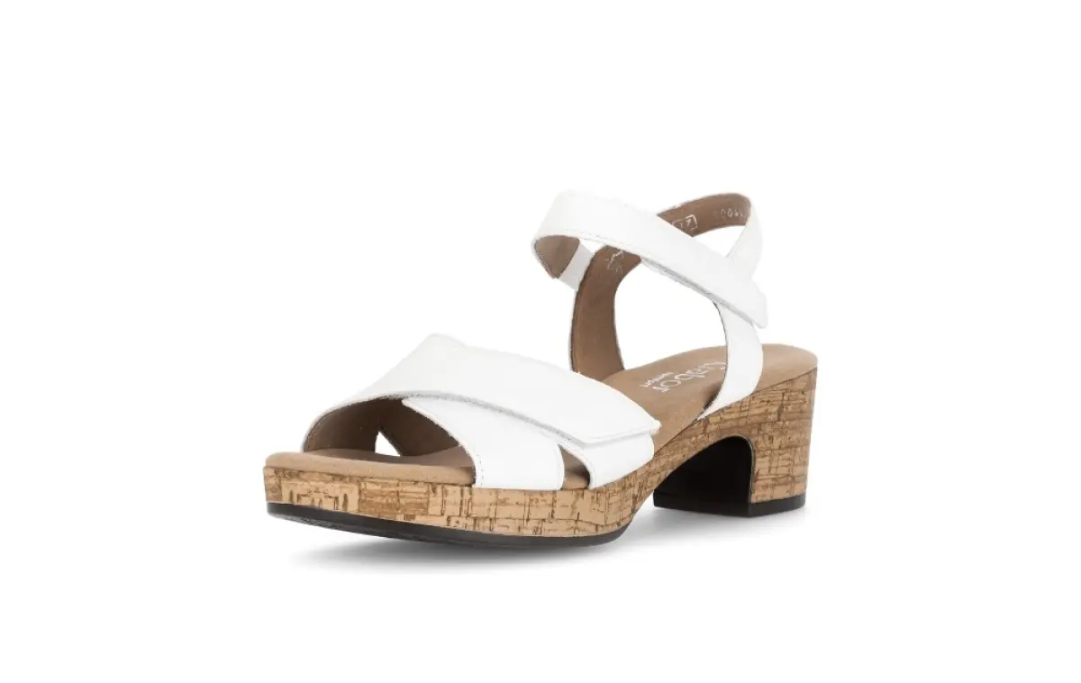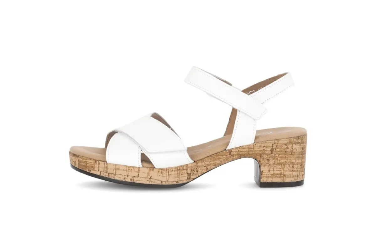 De Gabor sandaal in wit nappaleer biedt een perfecte balans tussen elegantie en comfort. Het zachte nappaleer voelt heerlijk soepel aan en geeft de sandaal een luxe uitstraling. De brede gekruiste banden zorgen voor een stevige en comfortabele pasvorm, terwijl het verstelbare enkelbandje extra ondersteuning biedt. De middelhoge hak met een natuurlijke kurklook voegt een stijlvolle touch toe zonder in te leveren op stabiliteit. Dankzij de flexibele zool ervaar je de hele dag door optimaal loopcomfort. Ideaal voor zomerse dagen, vakanties of een casual-chique outfit. Bestel nu en ontdek het tijdloze design en de perfecte pasvorm van deze witte Gabor sandaal.