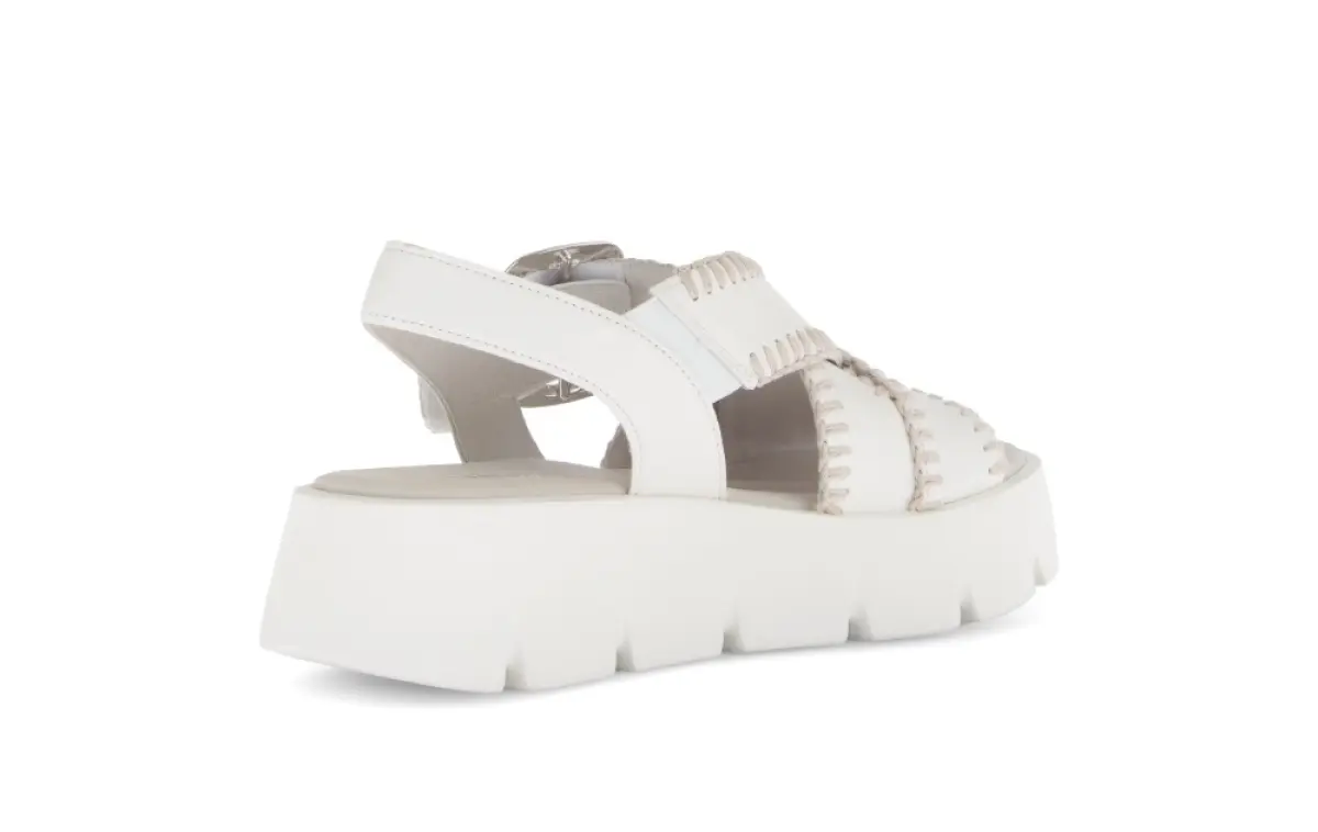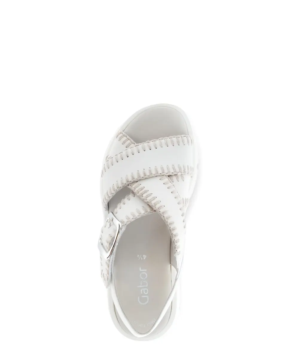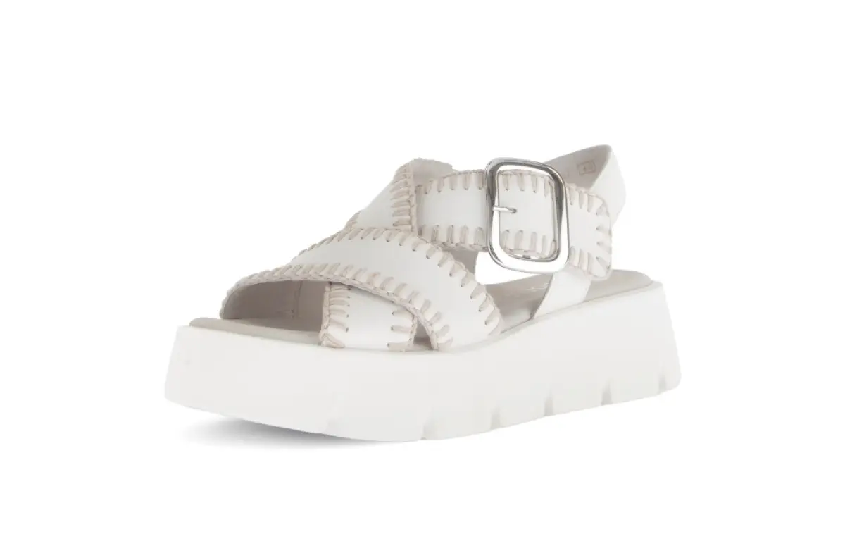 Maak een stijlvol statement met deze beige Gabor sandaal van soepel nappaleer. De opvallende stiksels, brede bandjes en gesp zorgen voor een speelse, moderne look. Dankzij de wijdte F sluit deze schoen mooi aan op een smalle tot normale voet, terwijl de lichtgewicht platformzool extra comfort en demping biedt bij elke stap. Het leer voelt zacht aan op de huid en vormt zich moeiteloos naar je voet. Dankzij de handige klittenband sluiting trek je de sandaal eenvoudig aan. Klanten zijn lovend over het draagcomfort en de trendy uitstraling. Combineer met een zomerjurk of linnen broek voor een moeiteloos chique look. Bestel nu en stap stijlvol de zomer in!