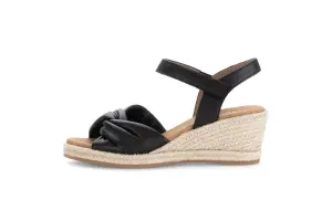 Deze witte sandaal van nappaleer van Gabor straalt zomerse elegantie uit met een vleugje mediterrane charme. Het soepele nappaleer voelt zacht aan en vormt zich mooi naar je voet voor een perfecte pasvorm. De espadrille sleehak met gevlochten touwzool geeft de sandaal een natuurlijke, luchtige look, terwijl het vaste voetbed zorgt voor comfort bij elke stap. Dankzij de wijdte G biedt dit model extra ruimte en draaggemak, ideaal voor warme dagen. Deze sandaal is moeiteloos te combineren met zowel een zomerse jurk als een linnen broek.