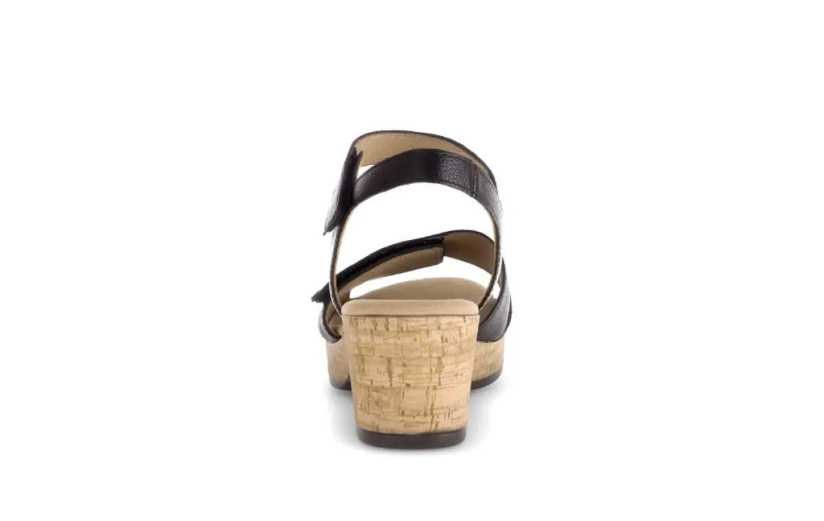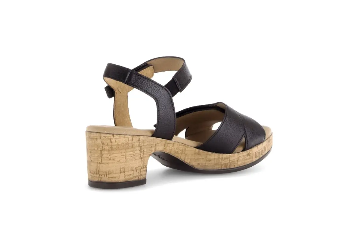 Deze moderne Gabor sandaal van zwart kalfsleer biedt de perfecte balans tussen stijl en comfort. Het soepele leer voelt zacht aan op de huid en zorgt voor een luxe uitstraling die moeiteloos combineert met zowel casual als zomerse outfits. De natuurlijke kurklook zool geeft de sandaal een eigentijdse twist en zorgt voor een lichte, flexibele demping bij elke stap. Dankzij de wijdte G biedt dit model extra ruimte aan de voet, wat zorgt voor optimaal draagcomfort, ook bij een bredere pasvorm. Het vaste voetbed biedt steun en comfort gedurende de hele dag, ideaal voor wie lange tijd op de been is. De verstelbare enkelband met klittenbandsluiting zorgt voor een perfecte pasvorm en maakt het aan- en uittrekken eenvoudig. Ben je opzoek naar een veelzijdige toevoeging voor jouw zomergarderobe? Bestel dan nu deze sandaal.