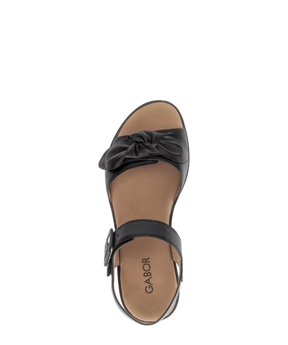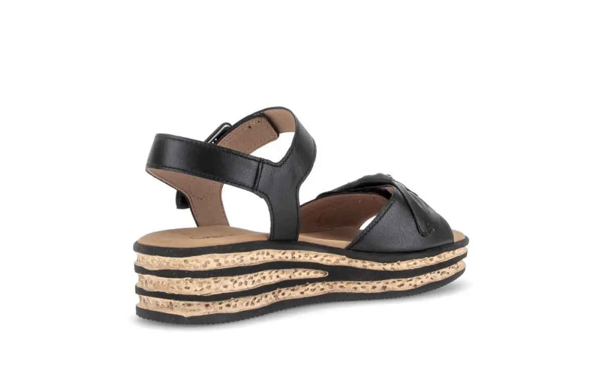 Deze Gabor sandaal van zwart suède combineert tijdloze elegantie met optimaal draagcomfort. De zachte suède band over de wreef is voorzien van een subtiele knoop, wat zorgt voor een vrouwelijk en verfijnd accent. De verstelbare gesp bij de enkel zorgt voor een stevige en persoonlijke pasvorm. Dankzij de Best Fitting wijdte F ervaar je meer ruimte bij de voorvoet, waardoor de sandaal ook op warme dagen prettig blijft dragen. Het vaste voetbed biedt ondersteuning en voelt zacht aan bij elke stap. De lichte sleehak met kurklook geeft de sandaal een moderne, zomerse uitstraling en zorgt voor demping en stabiliteit tijdens het lopen. De zwarte kleur maakt deze sandaal veelzijdig en eenvoudig te combineren van casual tot elegant, passend bij elke zomerse gelegenheid.