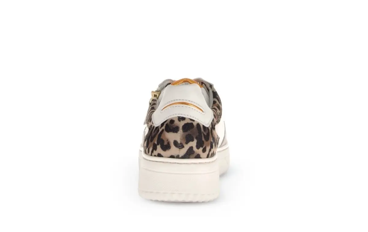 Deze Gabor sneakers combineren wit kalfsleer met een leopard accent voor een unieke, modieuze uitstraling. De ritssluiting naast de veters zorgt voor gemak en een moderne look. Perfect voor een stijlvolle casual outfit.