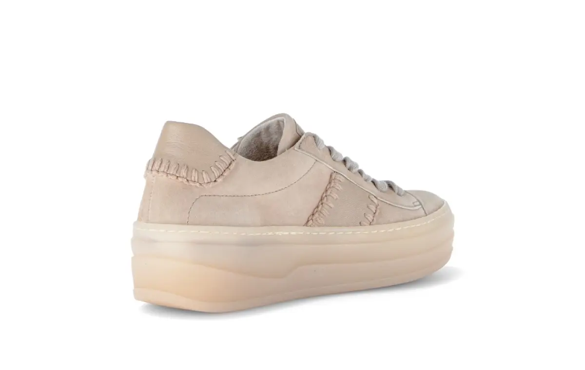 Deze Gabor sneaker van beige suède combineert een trendy design met het comfort waar Gabor om bekendstaat. Het zachte suède voelt soepel aan en vormt zich moeiteloos naar de voet, terwijl de decoratieve stiksels zorgen voor een verfijnde, eigentijdse uitstraling. De hoge plateauzool geeft de schoen een moderne look en biedt tegelijkertijd extra demping en stabiliteit bij elke stap. Dankzij het losse voetbed kun je eenvoudig je eigen inlegzolen gebruiken voor persoonlijk comfort. De wijdte F (Best Fitting) biedt iets meer ruimte bij de voorvoet, wat zorgt voor een ontspannen pasvorm. Deze beige Gabor sneaker is de perfecte keuze voor wie stijl, comfort en kwaliteit wil combineren in één veelzijdige schoen