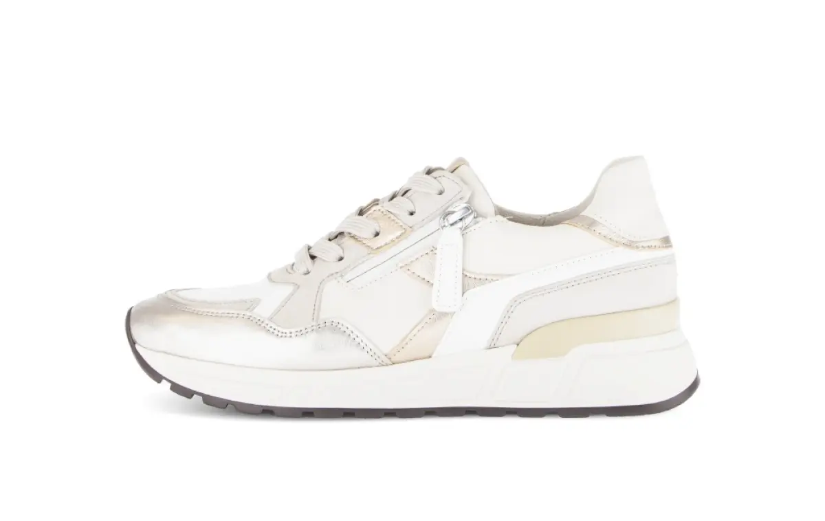 Deze beige sneaker van Gabor biedt een perfecte mix van stijl en comfort, ideaal voor dagelijks gebruik. Het soepele nappaleer voelt zacht aan en zorgt voor een verfijnde uitstraling, terwijl de subtiele glans een elegante touch toevoegt aan je outfit. De lichte tint maakt de sneaker veelzijdig en makkelijk te combineren met zowel casual als geklede looks. De wijdte H zorgt voor extra ruimte en draagcomfort, en het losse voetbed maakt de schoen geschikt voor eigen inlegzolen. De robuuste zool met dempende werking biedt uitstekende ondersteuning bij elke stap, wat deze sneaker ideaal maakt voor lange dagen onderweg. Of je nu kiest voor een ontspannen stadswandeling of een dag op kantoor, met deze sneaker loop je er altijd comfortabel en stijlvol bij.