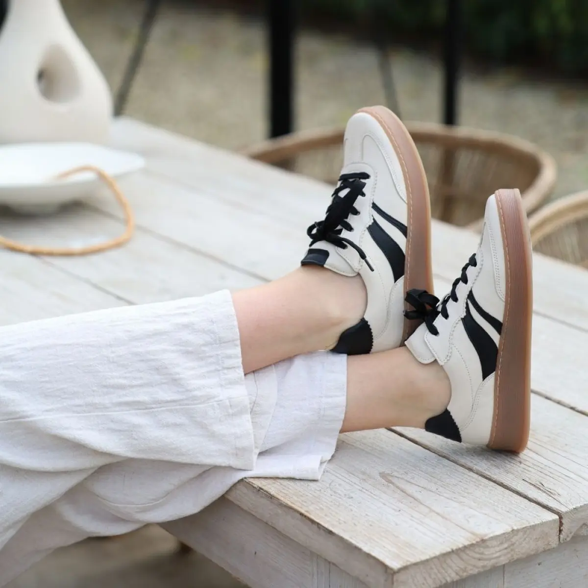 Deze beige Gabor sneaker van nappaleer heeft een sportieve en moderne uitstraling met contrasterende zwarte details. De combinatie van het zachte leer en de lichte kleur maakt deze schoen veelzijdig en makkelijk te combineren met zowel casual als meer geklede outfits. De caramelkleurige zool geeft de sneaker een eigentijdse twist en zorgt voor een comfortabele loopervaring dankzij de dempende werking. De wijdte G biedt een fijne pasvorm voor de gemiddelde voet, terwijl het losse voetbed ruimte geeft voor je eigen inlegzolen. Het soepele leer vormt zich prettig naar je voet en het gladde binnenwerk voelt zacht aan. Of je nu kiest voor een relaxte jeans of een nette pantalon, deze sneaker voegt altijd een vleugje stijl en comfort toe aan je look.