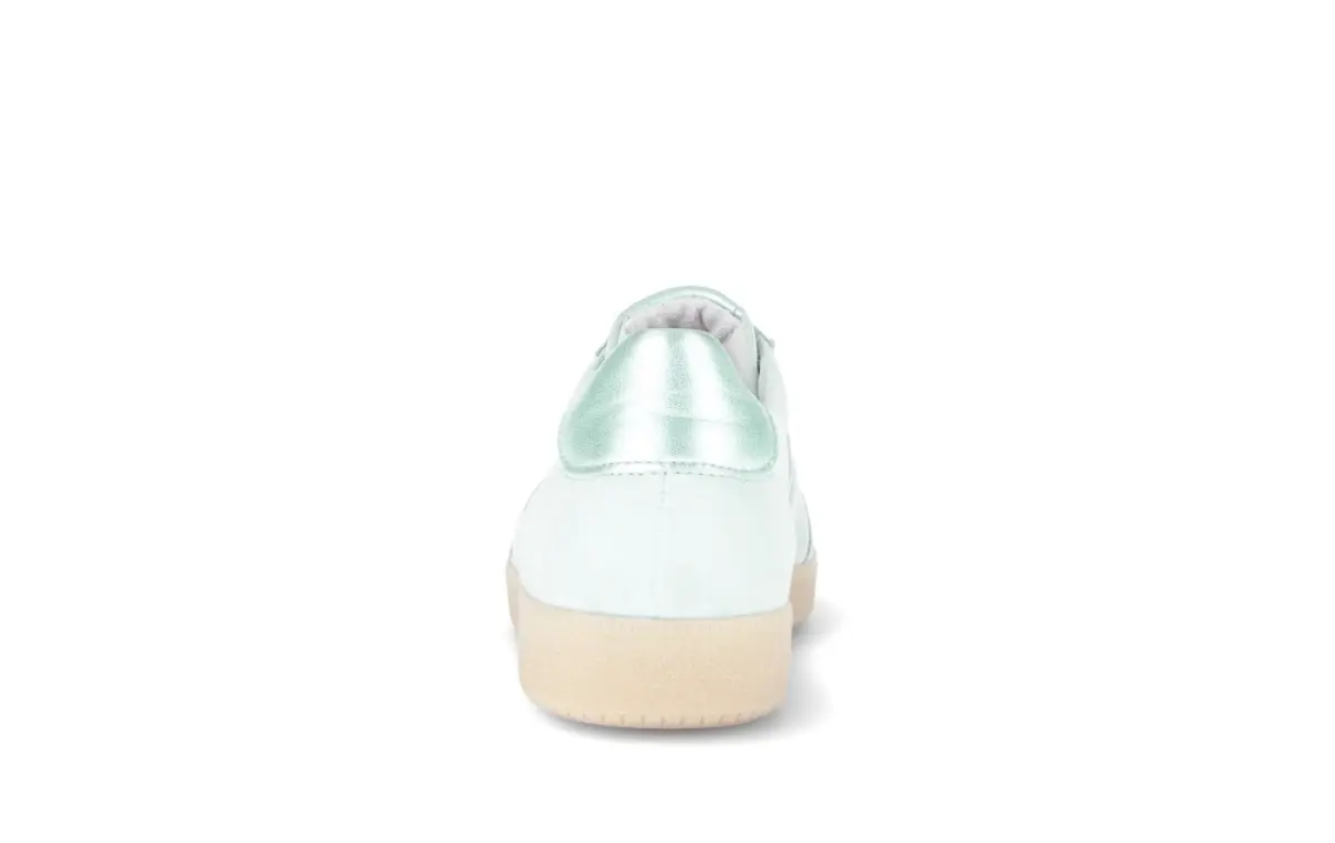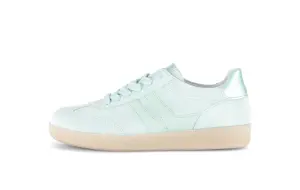 Deze Gabor sneaker van lichtgroen suède is een frisse en stijlvolle keuze voor het nieuwe seizoen. Het zachte suède voelt soepel aan en zorgt voor een luxe uitstraling, terwijl het losse voetbed de mogelijkheid biedt om je eigen inlegzolen te gebruiken voor optimaal comfort. De wijdte F (Best Fitting) biedt iets meer ruimte bij de voorvoet, wat bijdraagt aan een optimale pasvorm. De lichte rubberen zoolzorgt voor een soepele afwikkeling en extra stabiliteit. De lichtgroene kleur geeft deze sneaker een moderne en luchtige look die prachtig combineert met zomerse tinten zoals wit, beige of denim.