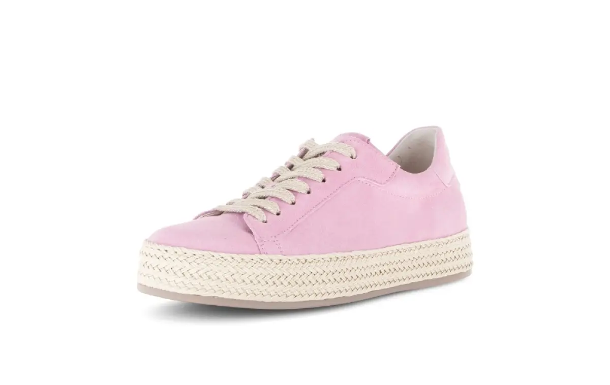 Deze Gabor sneaker van roze suède is de perfecte combinatie van vrouwelijkheid en comfort. Het zachte suède geeft de schoen een verfijnde uitstraling en voelt soepel aan, terwijl het losse voetbed de mogelijkheid biedt om je eigen inlegzolen te gebruiken voor een persoonlijke pasvorm. De wijdte F (Best Fitting) zorgt voor iets meer ruimte bij de voorvoet, waardoor deze sneaker ook na een lange dag comfortabel blijft. De gevlochten zoolrand geeft het model een zomerse, speelse look en maakt de schoen tot een echte eyecatcher. Bestel nu onze roze sneaker eenvoudig via onze webshop.
