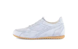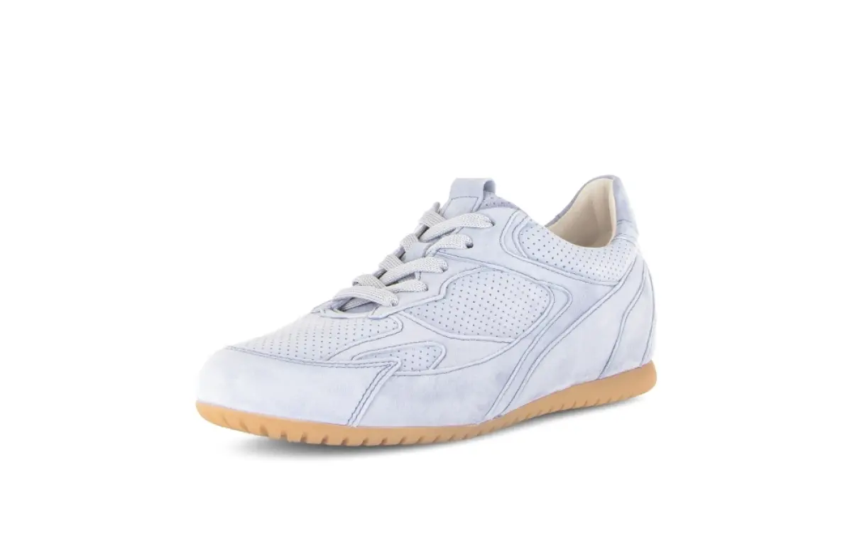 Deze skyblauwe sneaker van suède combineert lichtheid, comfort en stijl in één ontwerp. Het zachte suède geeft de schoen een verfijnde uitstraling, terwijl de geperforeerde details zorgen voor extra ventilatie en een luchtig gevoel, ideaal voor dagelijks gebruik. Dankzij het losse voetbed ervaar je optimaal draagcomfort en kun je eventueel je eigen inlegzolen gebruiken. De wijdte H biedt meer ruimte aan de voet, wat zorgt voor een ontspannen pasvorm zonder drukpunten. Deze Gabor sneaker is de perfecte keuze voor wie houdt van een subtiele, sportieve look met een vleugje elegantie.