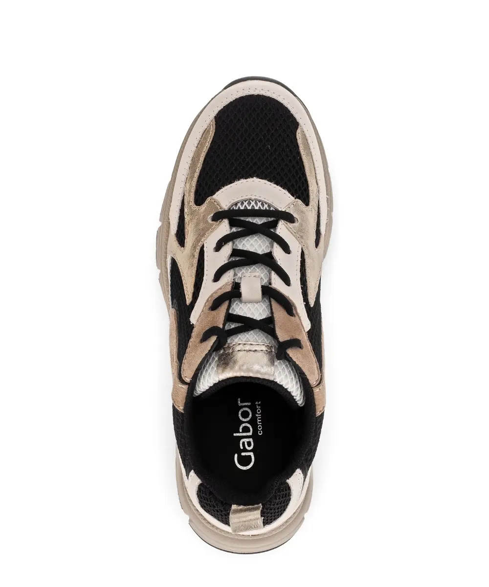 Kies voor deze sportieve Gabor sneaker van taupe suède, een perfecte mix van stijl en comfort in wijdte G. De combinatie van verschillende materialen en structuren, waaronder mesh, geeft de schoen een eigentijdse uitstraling. De zool ondersteunt moeiteloos elke stap, terwijl het zachte suède soepel aanvoelt rond je voet. Combineer met een jeans of een sportieve rok voor een casual-chic look. Ontdek zelf het verschil en bestel nu jouw Gabor sneaker.