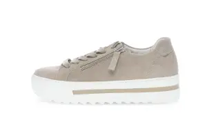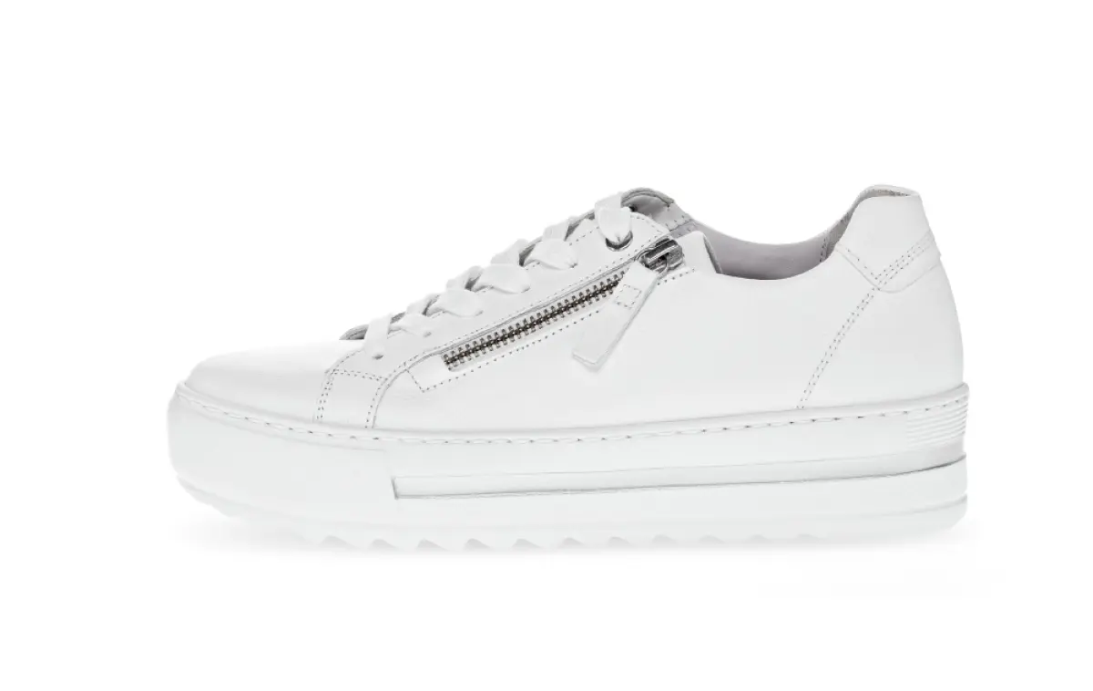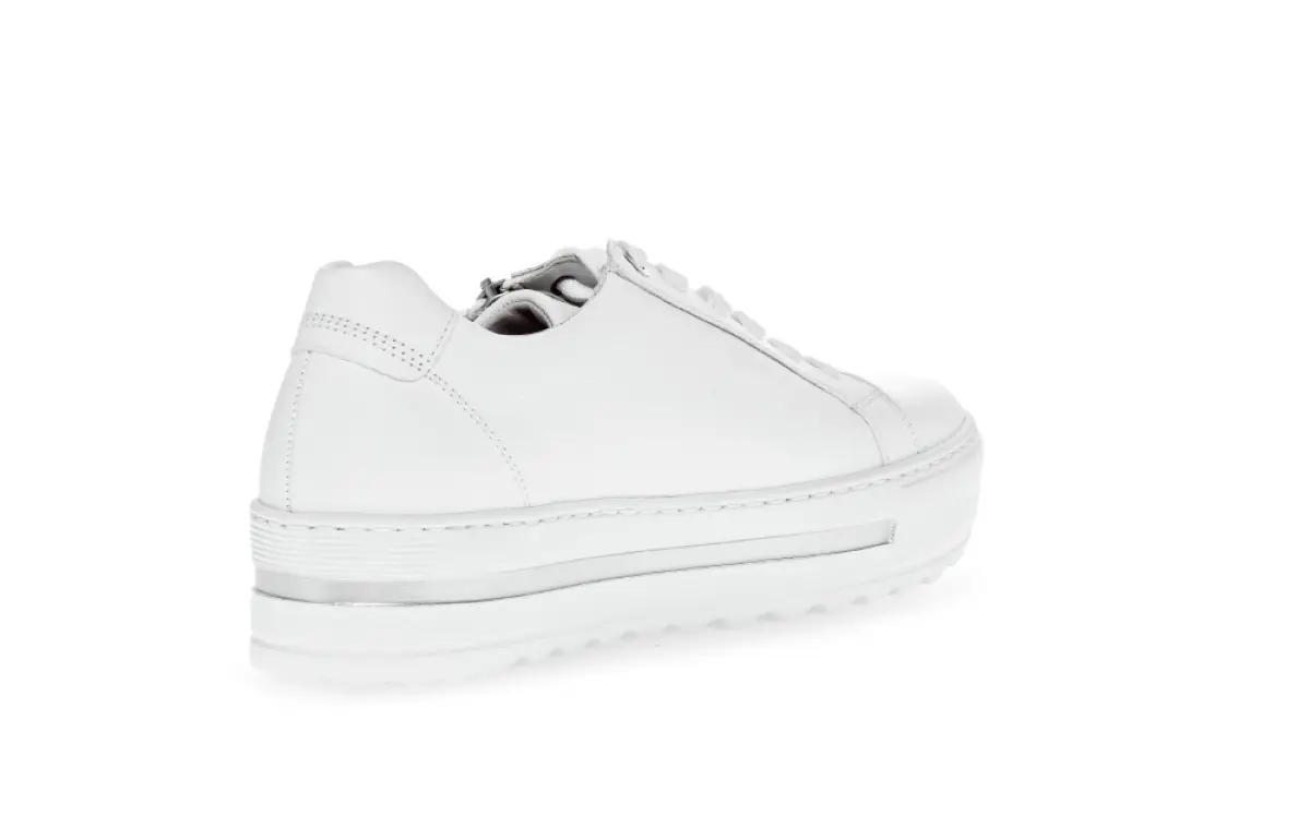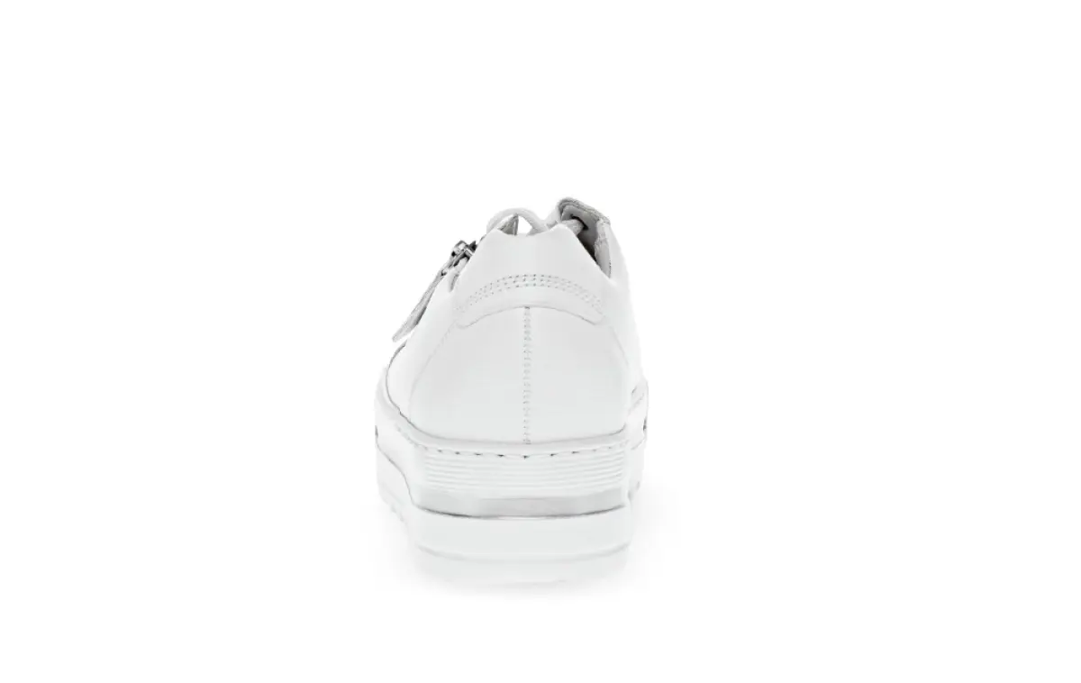Deze witte sneaker van kalfsleer is een tijdloze musthave voor elke garderobe. Het soepele leer voelt zacht aan en biedt langdurig draagcomfort, terwijl het losse voetbed ervoor zorgt dat je eenvoudig eigen inlegzolen kunt gebruiken. De wijdte G maakt dat de schoen prettig aansluit zonder te knellen, ideaal voor dagelijks gebruik. De stevige plateauzool met subtiele metallic accentlijn geeft een moderne twist aan het klassieke ontwerp. Dankzij de combinatie van veters en een handige ritssluiting trek je de sneaker snel aan en uit. Perfect te combineren met zowel een casual jeans als een zomerse jurk voor een frisse, stijlvolle look.
