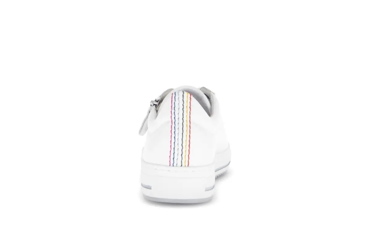 Deze witte sneaker van kalfsleer is een stijlvolle basic met een moderne twist. Het gladde leer voelt zacht aan en zorgt voor een luxe uitstraling die moeiteloos combineert met iedere outfit. Dankzij het losse voetbed geniet je van optimaal loopcomfort en kun je eenvoudig je eigen inlegzolen gebruiken. De wijdte G biedt een fijne pasvorm die zowel steun als bewegingsvrijheid geeft. De witte zool met subtiel zilverkleurig accent en fijne afwerking aan de hiel zorgt voor een sportieve, frisse look. De combinatie van veters en een handige ritssluiting maakt het aan- en uittrekken extra gemakkelijk, ideaal voor dagelijks gebruik.