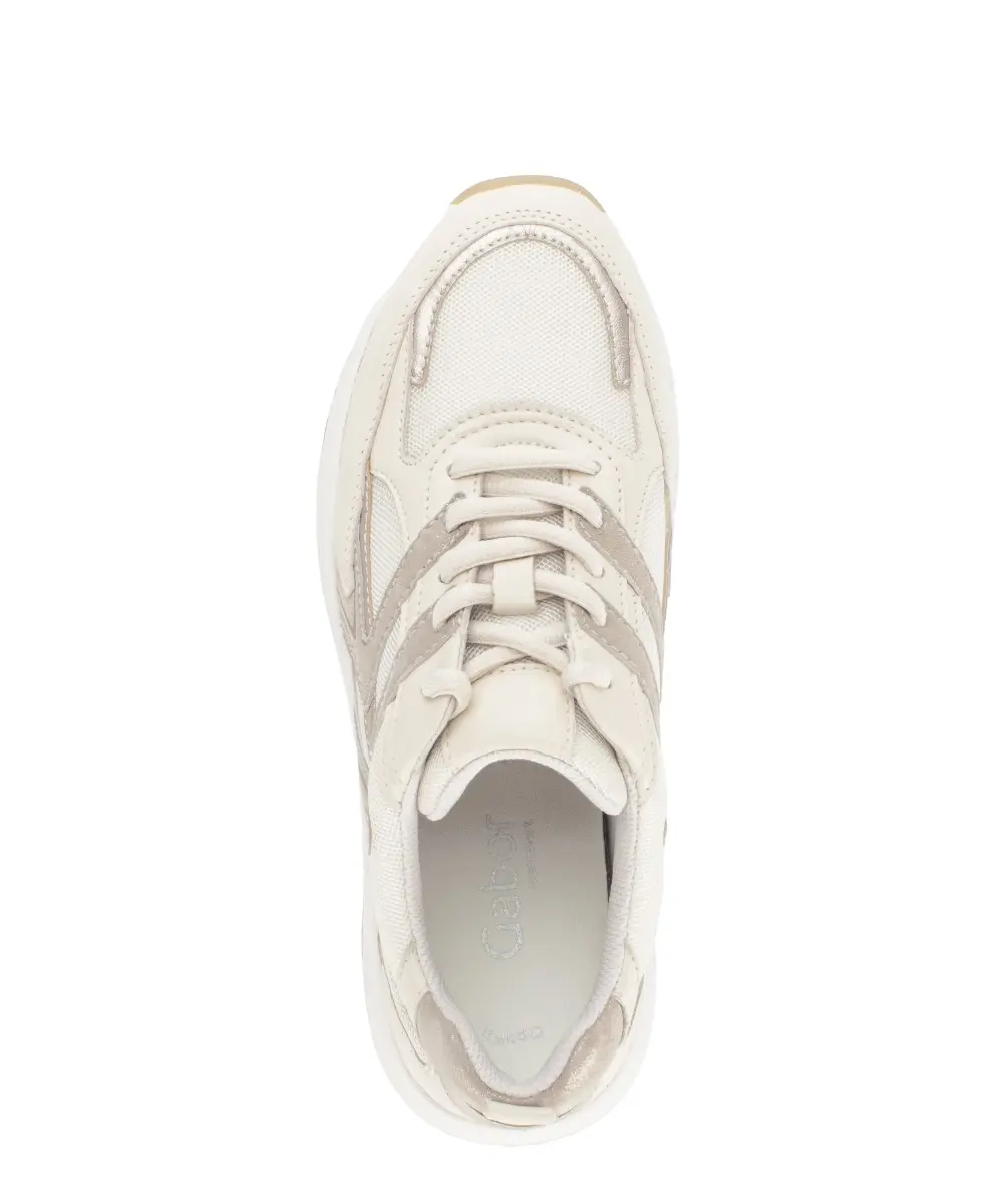 Deze witte Gabor sneaker van nappaleer is een perfecte combinatie van sportief en elegant. De zachte glans van het leer wordt mooi aangevuld door subtiele metallic accenten, wat zorgt voor een frisse en vrouwelijke uitstraling. De lichte tinten maken deze sneaker ideaal voor het voorjaar en de zomer, terwijl het ontwerp zorgt voor een moderne en tijdloze look. Het losse voetbed biedt optimaal draagcomfort en maakt de schoen geschikt voor eigen inlegzolen. Dankzij de wijdte H heeft de sneaker een iets ruimere pasvorm, wat extra comfort geeft bij langere dagen op pad. De zachte voering en flexibele zool zorgen voor een soepele stap en goede ondersteuning.