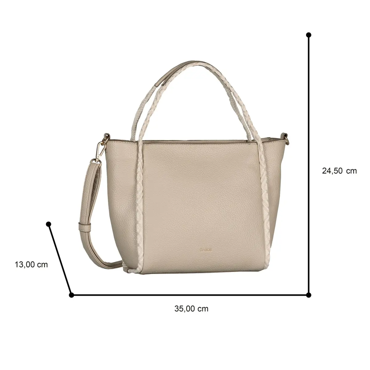 Deze beige Gabor tas is ontworpen voor vrouwen die houden van rustige elegantie en praktische klasse. Met een formaat van 35 × 13 × 24,5 cm biedt deze tas genoeg ruimte voor alles wat je dagelijks wilt meenemen. Het zachte, lichtkorrelige materiaal en de gevlochten handvatten geven de tas een verfijnde, vrouwelijke look die moeiteloos past bij zowel casual outfits als meer geklede stijlen. Het ruime hoofdvak sluit veilig met een rits en biedt binnenin overzichtelijke vakken voor je mobiel, sleutels of kleine essentials. Aan de achterzijde vind je een extra ritsvak voor items die je snel bij de hand wilt hebben. Dankzij de afneembare en verstelbare schouderriem draag je de tas comfortabel crossbody of over de schouder, terwijl de korte handvatten zorgen voor een stijlvolle draagoptie in de hand. Een veelzijdige en elegante tas waar je elke dag plezier van hebt.