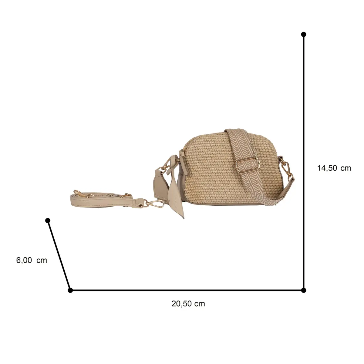 Deze beige crossbody tas is perfect voor dagen waarop je graag licht en handsfree op pad gaat. Het compacte formaat van 20,5 x 14,5 x 6 cm biedt voldoende ruimte voor je dagelijkse essentials, terwijl het gevlochten materiaal direct een zomerse, natuurlijke uitstraling geeft. De tas opent met een rits en heeft binnenin een overzichtelijke indeling met een extra ritsvak voor kleine items. Aan de achterkant vind je nog een handig vakje voor spullen die je snel bij de hand wilt hebben. De brede, verstelbare schouderband draagt comfortabel en geeft de tas een moderne twist, terwijl de smalle extra band het ontwerp net dat speelse accent geeft. Of je nu een stadswandeling maakt of een terrasje pakt, deze beige crossbody tas is een stijlvolle en praktische aanvulling op je outfit.